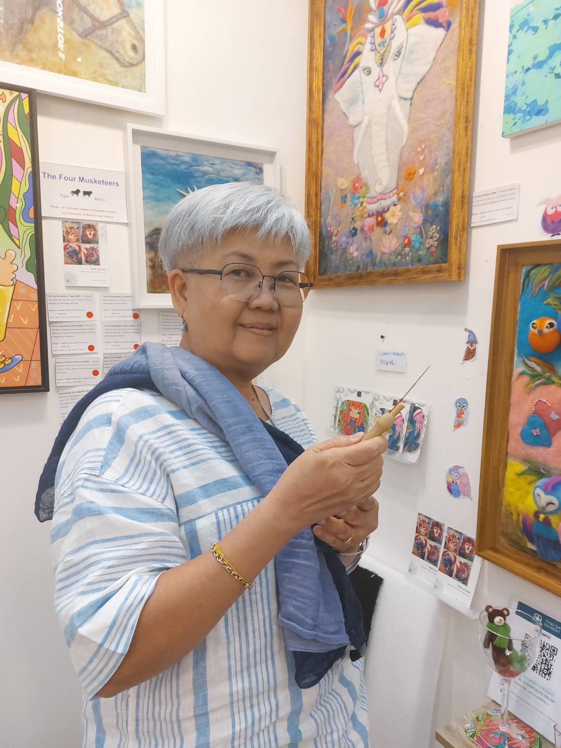 พู่กันของศิลปินแบรนด์Mama Wool art จะไม่ใช่พู่กัน แต่คือเข็มที่ใช้สร้างงาน