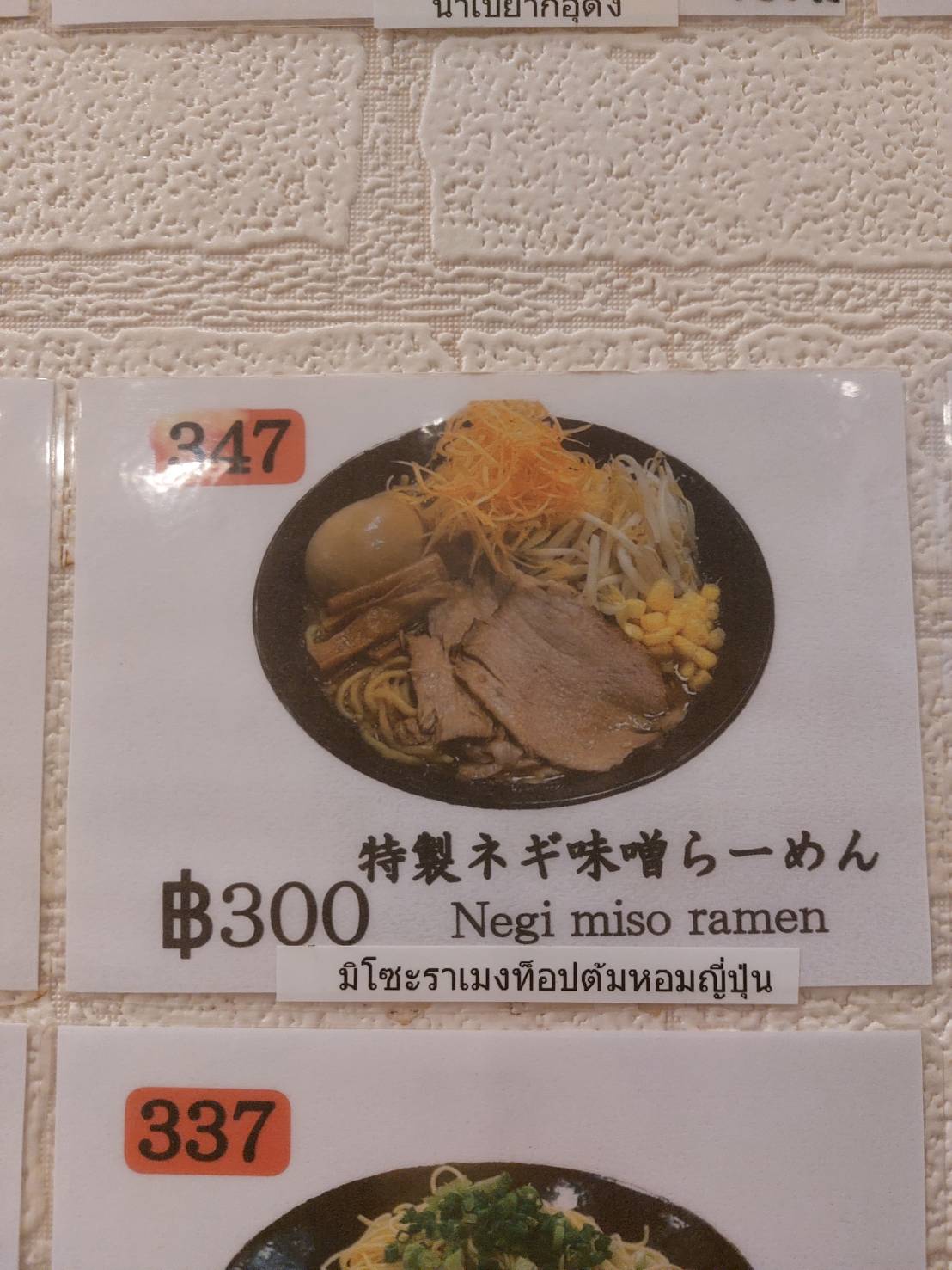 อาทิ เมนูนี้ มีทั้งชื่อภาษาญี่ปุ่น + ภาษาอังกฤษ ตรงคำว่า ท็อป น่าจะมาจากคำว่า on top หรือโรยหน้าด้วย และปิดท้ายด้วยภาษาไทย(ต้นหอมญี่ปุ่น)