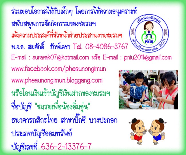 ชมรม "เพื่อน้องอิ่มอุ่น" ยินดีต้อนรับทุกท่าน "พบกันนับเป็นวาสนา"