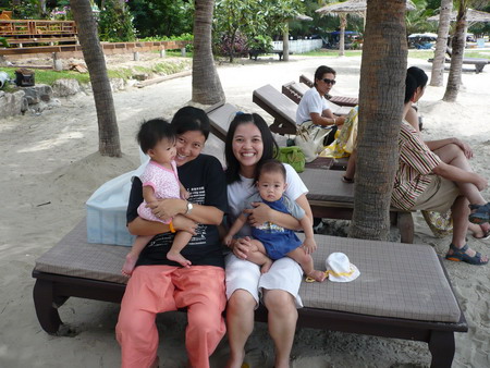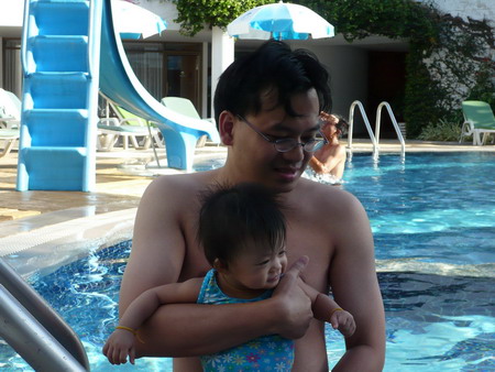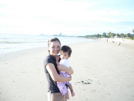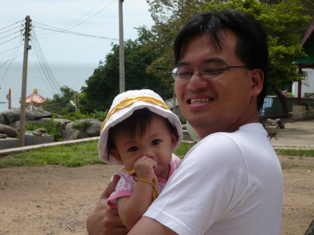 ตอนเช้าตื่นขึ้นมา แม่กับพ่อก้อพาน้องพริมไปเดินเล่นที่ริมหาดค่ะ คนเยอะแยะเลย แดดกำลังดี หาดสะอาดมั่กๆค่ะ เพราะอยู่ใกล้พระราชวังมากๆ แต่น้องพริมกลัวน้ำทะเลอ่ะ พ่อก้อเลยพาน้องพริมไปว่ายน้ำในสระแทน อิ อิ สนุกสุดๆ พอน้องพริมเล่นน้ำประมาณ 15 นาทีก้อขึ้นไปที่ห้องค่ะ เลยโทรตามมิสเตอร์ดอนนี่ค่ะให้ไปทานอาหารเช้าด้วยกัน มีโดนต่อว่าเล็กน้อยว่าไปเดินเล่นหาดแล้วไม่ยอมโทรตาม แต่สรุปได้ว่าถึงโทรตามก้อคงไม่ตื่นเพราะง่วงมาก หลังจากเรียบร้อยกับอาหารเช้าแล้ว เราก้อออกเดินทางค่ะ เพื่อเอานมไปให้ต้นกล้าลูกของลุงเอกับป้าเฮี๊ยะ ที่โรงแรมใกล้วเขาตะเกียบ แต่หลงทางเล็กน้อย เลยได้ไปเที่ยววัดเขาตะเกียบค่ะโชว์รูปมิสเตอร์ดอนนี่สุดเท่ห์ซะไม่เหลือค่ะ หลังจากชักภาพกันเสร็จเรียบร้อย ก้อโดนโทรตามจากป้าเฮี๊ยะให้ไปถึงที่หมายซะที แล้วเราก้อได้พบกันจนได้ อิ อิ เสร็จจากเจอต้นกล้าเราก้อรีบกลับโรงแรมไปเก็บของ เช็คเอาท์ไปหาของกินแล้วกลับกรุงเทพฯ จ้า เหนื่อยจริงๆเลย