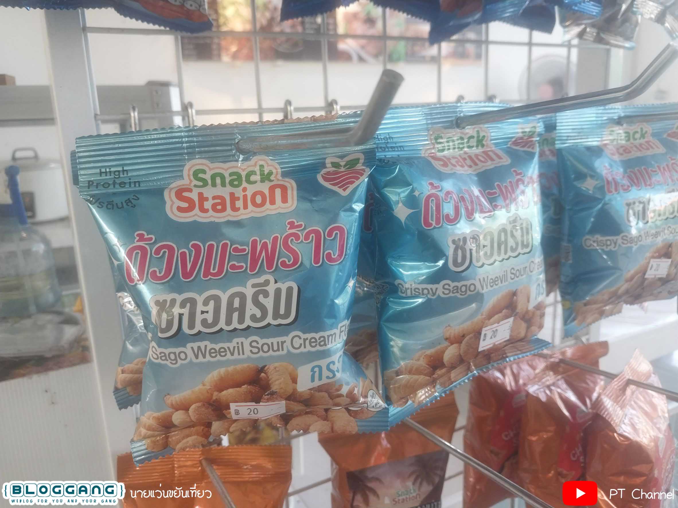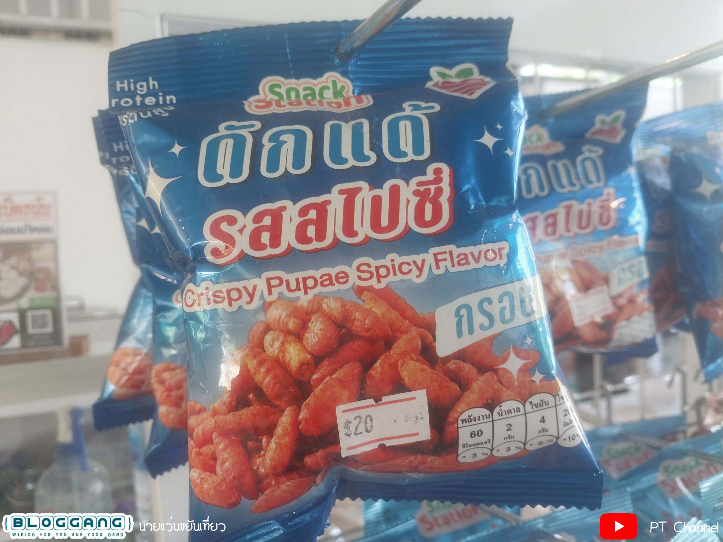 ผมได้เจอของแปลกในร้านนี้คือ ดักแก่อบรสสไปซี ผมไม่เคยกินดักแกในซองขนใแบบนี้