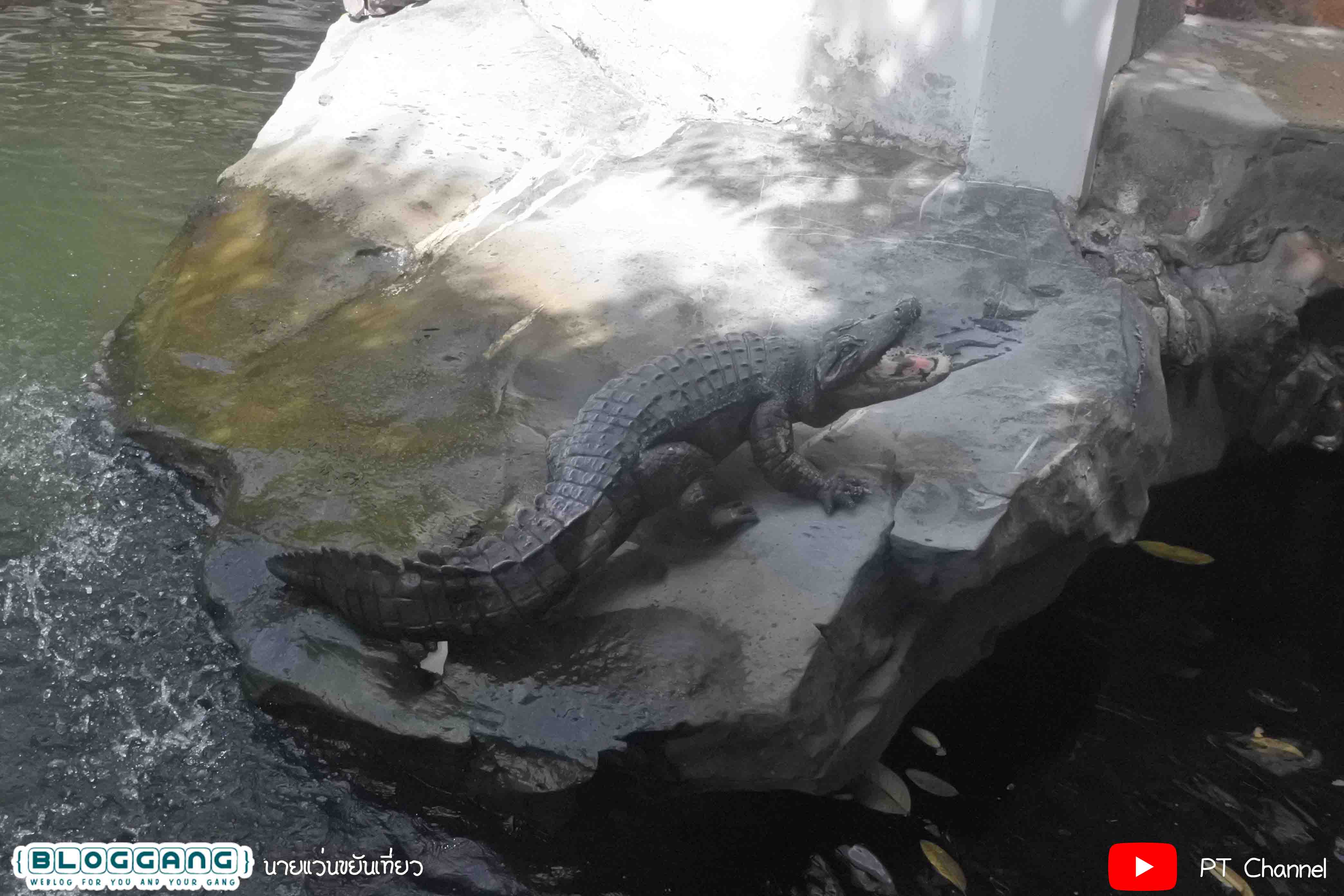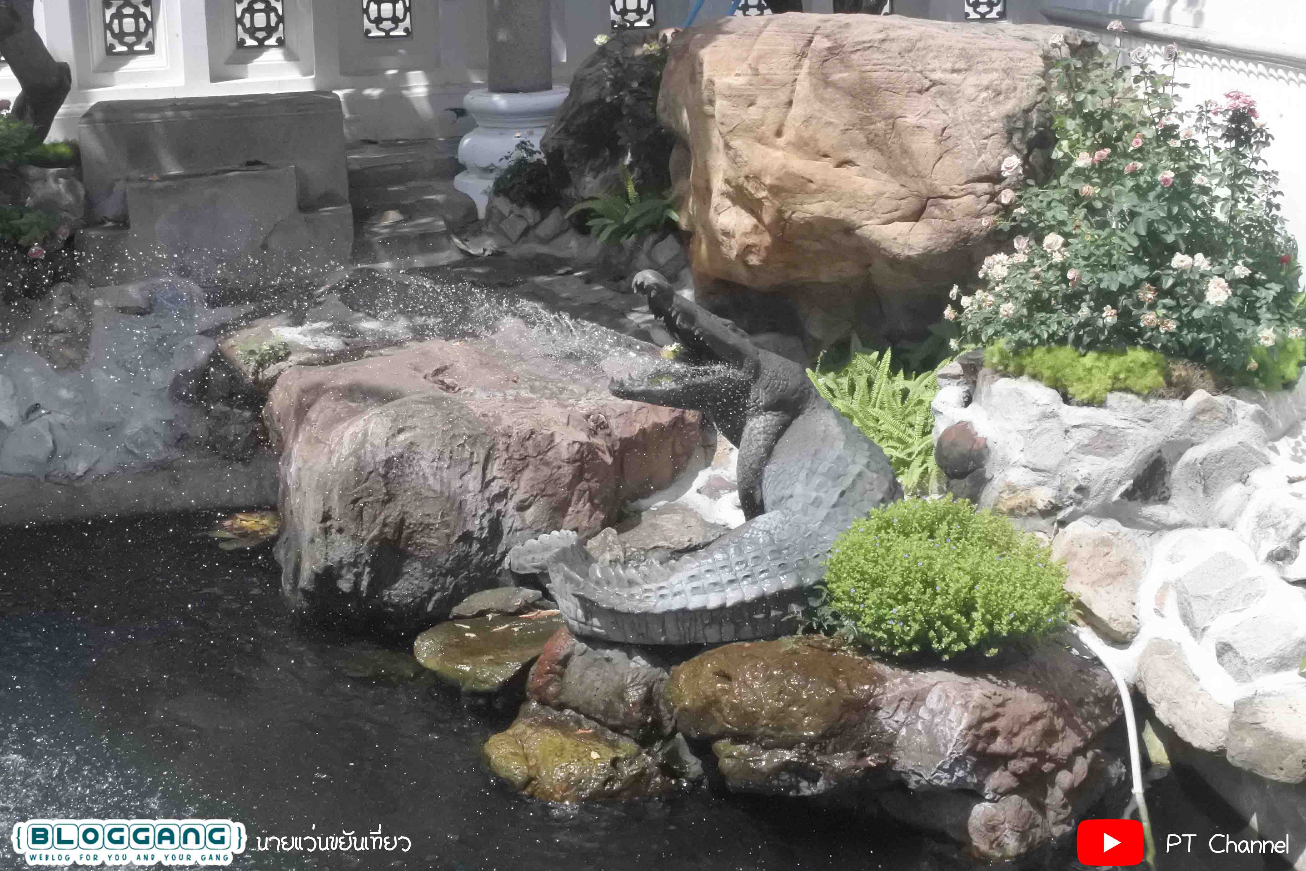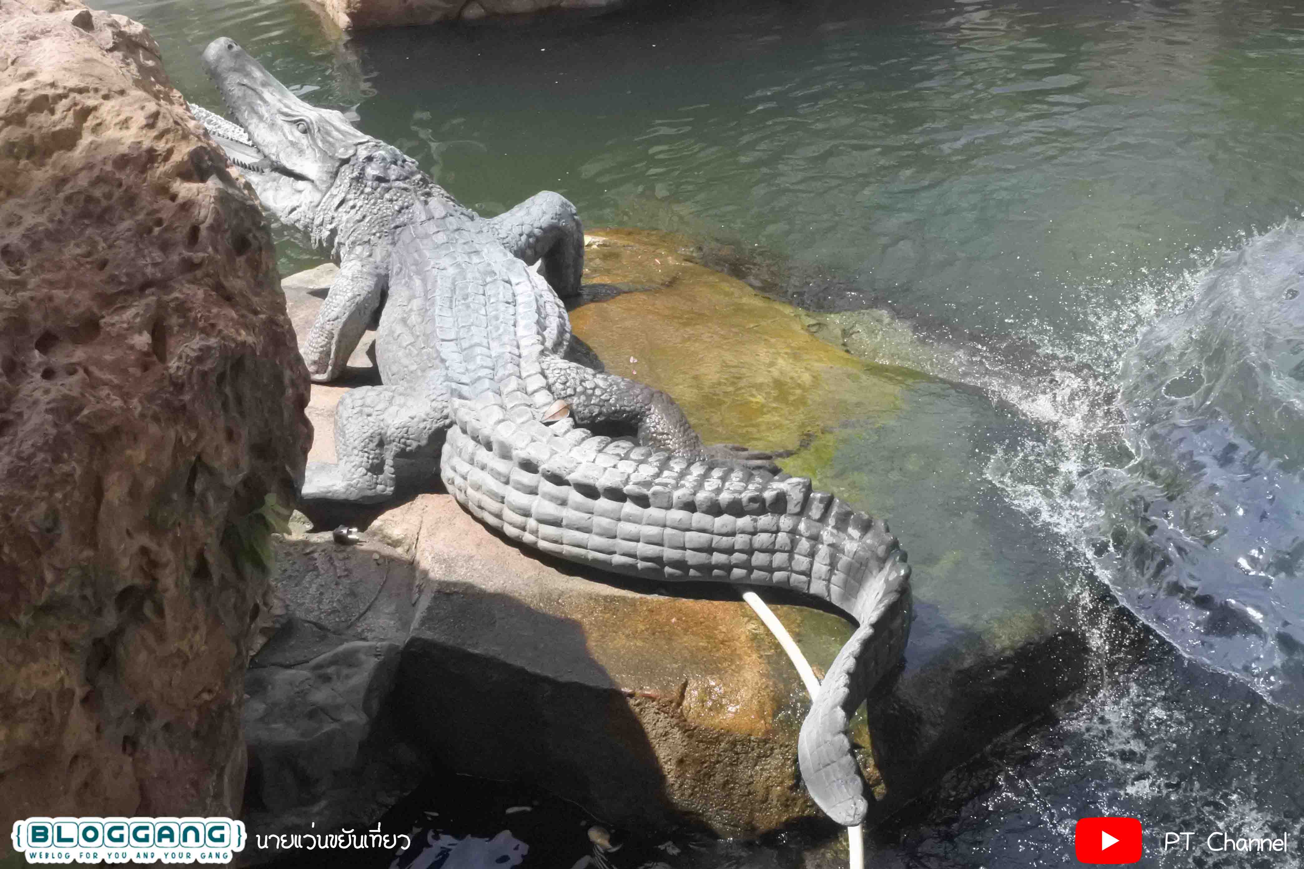 ที่มีความสวยงามสมจริงด้วยท่วงท่าแบบจระเข้ ประดับอยู่บริเวณริมน้ำในสวน