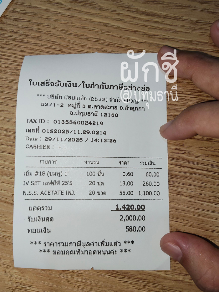 ค่าบริการให้น้ำเกลือ ไปทุกวัน ตั้งแต่วันที่ 23-29 พ.ย.2568 รวม 7 วัน 700 บาทค่ะ (เอาอุปกรณ์ไปเอง)