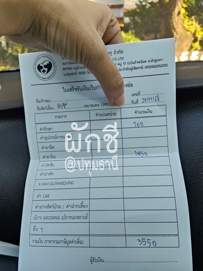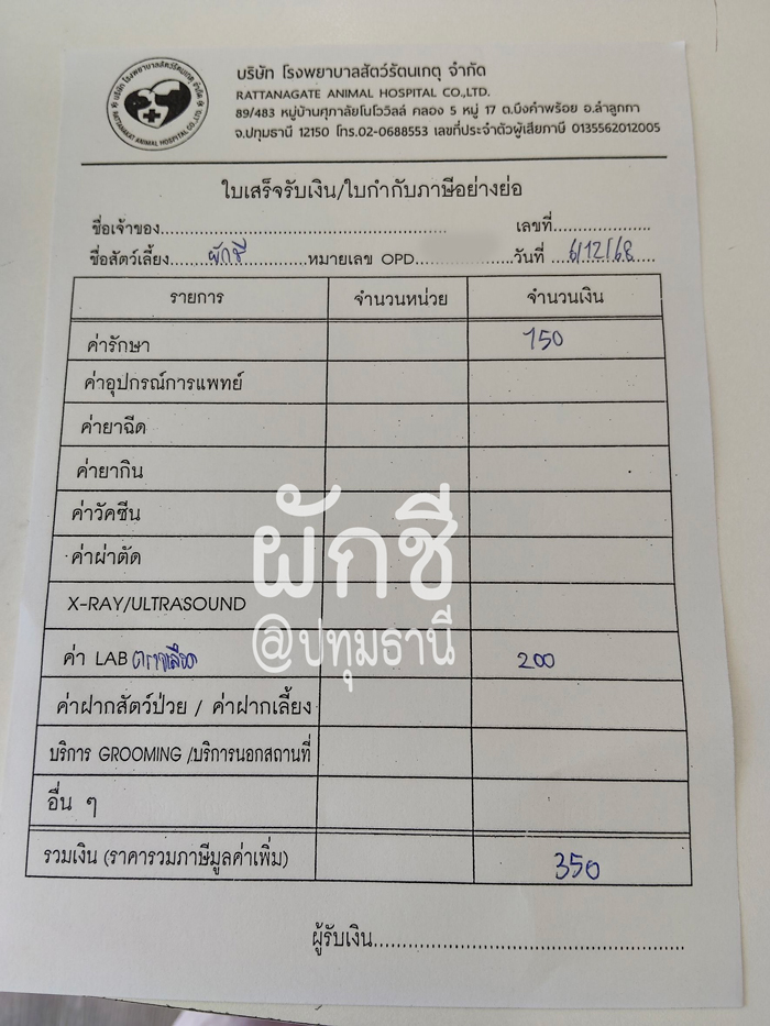(ค่ารักษาในใบเสร็จ 100 คือค่าให้น้ำเกลือนะคะ)
