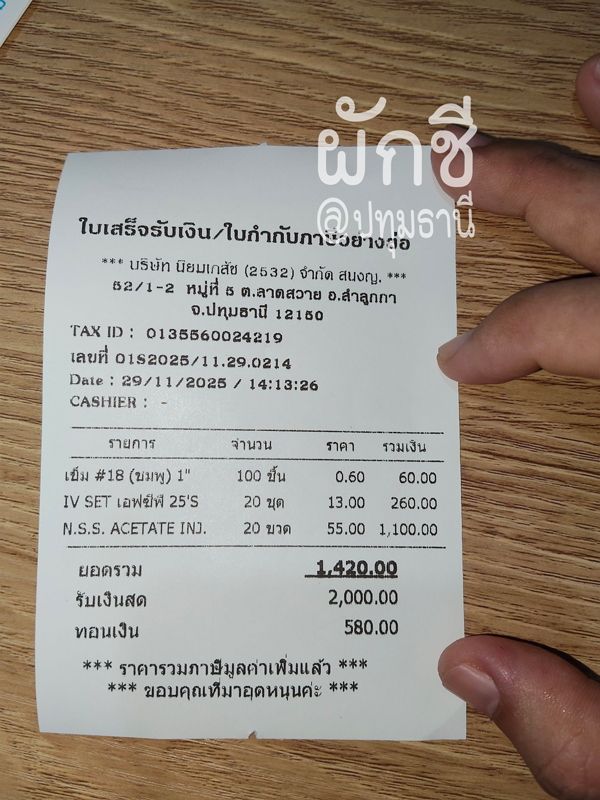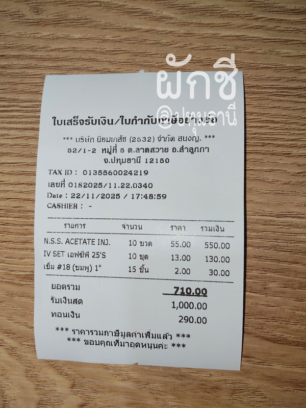 ลงใบเสร็จให้ดูราคา ซื้อเมื่อ 22/11/2568