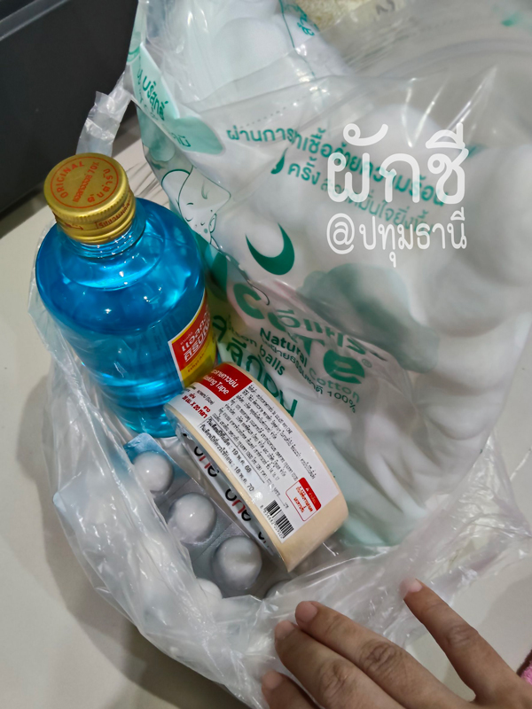 ในถุงจะเห็นมีแบบสำลีก้อนแบบแพ็กๆอันนึง