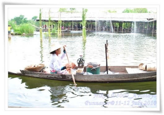 การเดินทางวันแรกเริ่มต้นด้วยแห่งแรกคือ "พระราชวังบางปะอิน" ต่อด้วย "วัดพนัญเชิง-วัดใหญ่ชัยมงคล" ตบท้าย "ตลาดน้ำคลองสระบัว" แห่งนี้ค่ะ....เราไปเดินทางไปถึงที่นี่เวลาประมาณบ่ายสามกว่าแล้ว โดยเสียค่าเข้าชม 50 บาท ( แต่สามารถทานน้ำดื่มที่ทาง Staff คลองสระบัวจัดบริการไว้ให้ได้ฟรีตลอดที่เราอยู่ในนั้น อิ๊ๆ)