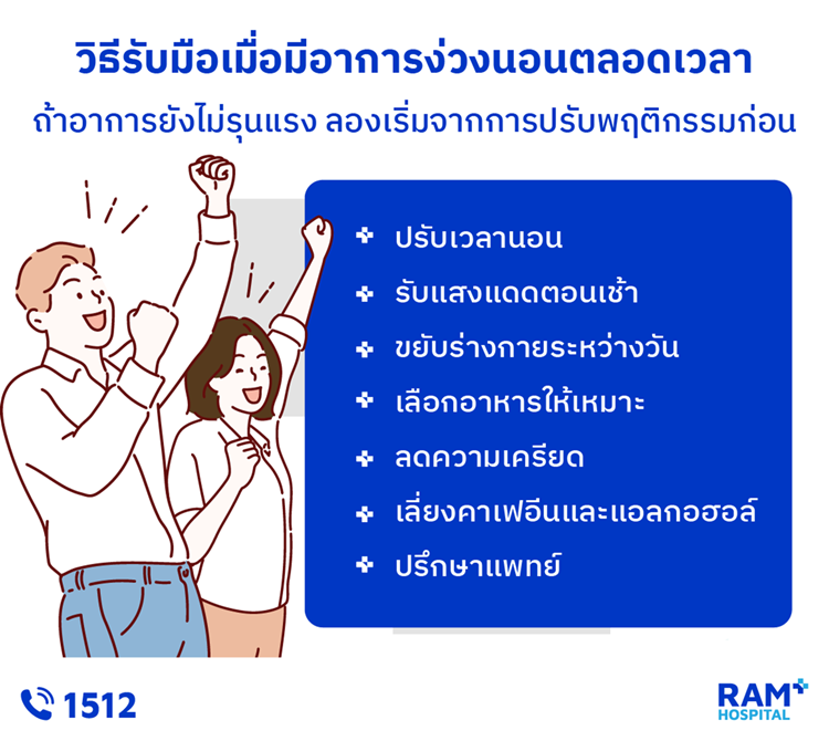 - ปรึกษาแพทย์ : ถ้าง่วงมากผิดปกติ แม้นอนพอ หรือมีอาการร่วม เช่น นอนกรน น้ำหนักขึ้น หนาวง่ายควรตรวจสุขภาพเพื่อหาสาเหตุที่แท้จริง