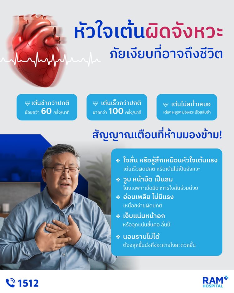 โรคหัวใจเต้นผิดจังหวะเกิดจากอะไรบ้างและรักษาหายได้จริงไหม? คลิกอ่านข้อมูลเพิ่มเติม >> https://www.ram-hosp.co.th/th/news_detail/2389