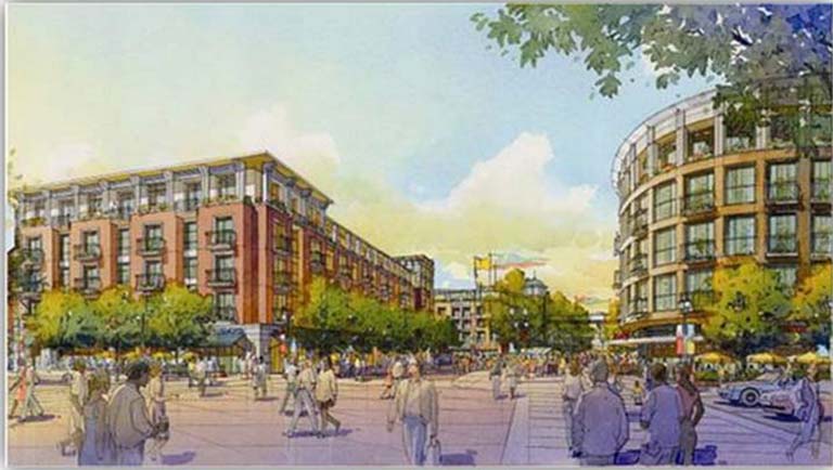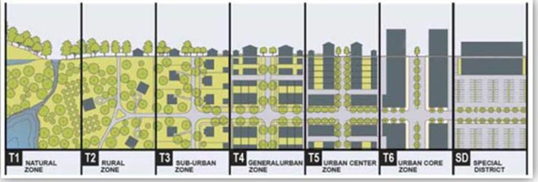 ภาพย่านพาณิชยกรรม Robson Street เมืองแวนคูเวอร์ที่ออกแบบปรับปรุงฟื้นฟูเพื่อให้เป็นใจกลางของชุมชนแห่งการเดินที่มีคุณภาพของเมือง ที่มา: ฐาปนา บุณยประวิตร (กุมภาพันธ์: 2557) การวางผังและออกแบบเมืองเพื่อสร้างโอกาสในการเดินที่เป็นกิจวัตร การเติบโตอย่างชาญฉลาดกำหนดให้การวางผังและออกแบบเมืองเป็นไปตามความต้องการของผู้มีส่วนได้ส่วนเสียโดยเฉพาะอย่างยิ่ง การสร้างเมืองแห่งการเดิน (Walkable City) จะต้องดำเนินการตาม4 ขั้นตอนอันประกอบด้วย การการวางผังยุทธศาสตร์ที่กำหนดให้ปรับเปลี่ยนกายภาพเป็นเมืองแห่งการเดินการจัดทำนโยบายการวางผังเพื่อสร้างโอกาสให้ประชาชนมีความสามารถในการเข้าถึงแหล่งงานและบริการสาธารณะด้วยการเดินการสร้างนโยบายการออกแบบเมืองเพื่อให้หน่วยบริการและที่อยู่อาศัยตั้งอยู่ใกล้เคียงกันและการจัดสร้างข้อกำหนดเพื่อส่งเสริมสภาพแวดล้อมในการเดิน รายละเอียดดังนี้ ภาพแสดงกายภาพถนนและอาคารบริการย่านชานเมืองพิษณุโลกที่ส่งเสริมการใช้รถยนต์ส่วนบุคคล ที่มา: ฐาปนา บุณยประวิตร (มีนาคม 2557)
