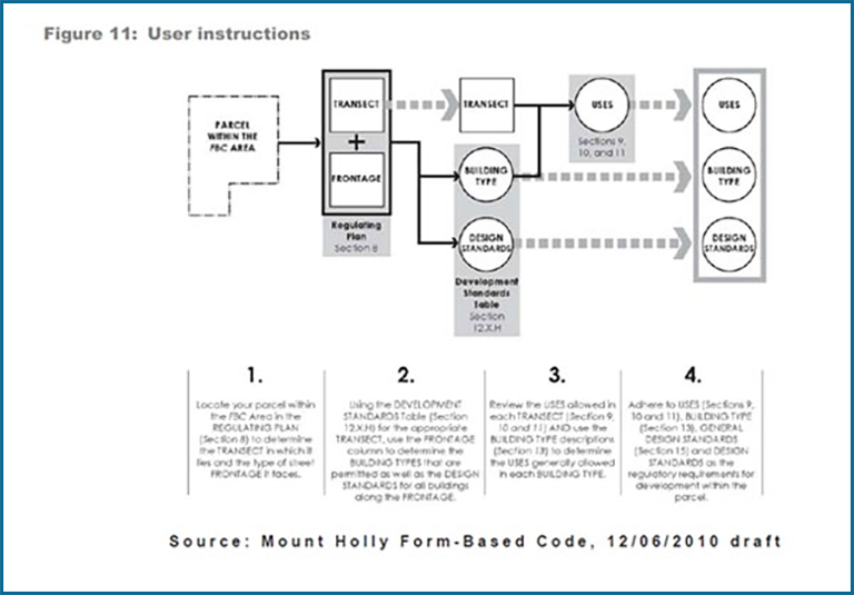 การจัดสร้างข้อกำหนด เพื่อส่งเสริมสภาพแวดล้อมในการเดิน เช่น การออกข้อกำหนดให้ผลประโยชน์สำหรับการปรับปรุงอาคารเก่าหรือสภาพด้านหน้าอาคารกรณีของเมืองแวนคูเวอร์ เจ้าของอาคารหรือผู้เช่าที่ใช้ประโยชน์อาคารจะได้รับการลดหย่อนภาษีเงินได้นิติบุคคลร้อยละ25 ระยะเวลา 2 ปีหรือการลงทุนที่ก่อสร้างอาคารตามแบบที่เสนอแนะโดยเทศบาลก็จะได้รับผลประโยชน์ด้านภาษีเช่นเดียวกับการปรับปรุงอาคารเก่าเช่นกันหรือการออกข้อกำหนดบังคับประเภทกิจกรรมตามผังการใช้ประโยชน์ที่ดิน เช่นในใจกลางย่านพาณิชยกรรมกำหนดให้ทุกอาคารมีความกว้างไม่น้อยกว่า 6เมตรและมีระยะความสูงชั้นหนึ่งสูงจากระดับพื้นถึงคานชั้นแรกไม่น้อยกว่า 4เมตรและกำหนดให้ด้านหน้าอาคารชั้นหนึ่งโปร่งแสงไม่น้อยกว่าร้อยละ 70 เพื่อบังคับให้พื้นที่บริเวณดังกล่าวเป็นห้องแสดงสินค้าร้านอาหาร หรือร้านค้าบริการที่แสดงผลิตภัณฑ์เพื่อให้สภาพแวดล้อมสองข้างทางเต็มไปด้วยการจัดแสดงหน้าร้านหรือwindowdisplay เป็นต้น จะเห็นได้ว่าแนวทางการสร้างเมืองแห่งการเดินนั้นต้องใช้องค์ประกอบการวางผังและการออกแบบทางกายภาพเป็นตัวชี้นำเพื่อกระตุ้น จูงใจและบังคับให้พื้นที่วางผังและกิจกรรมการใช้ประโยชน์เป็นไปตามแผนยุทธศาสตร์สร้างจำนวนประชากรในพื้นที่ให้เป็นตัวขับเคลื่อนระบบเศรษฐกิจและสร้างความมีชีวิตชีวาให้กับพื้นที่ด้วยการเดินของประชาชนที่เป็นกิจวัตร ผลประโยชน์ของการสร้างชุมชนแห่งการเดิน