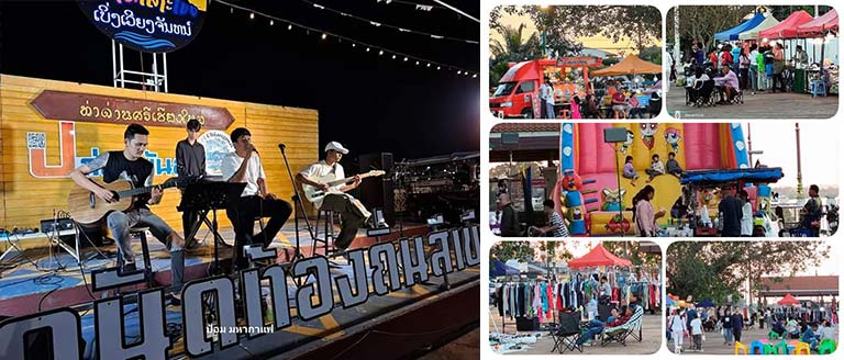 มีกิจกรรมมากมาย หมุนเวียนศิลปิน มาโชว์เพลง ดนตรี และกิจกรรมหลายรูปแบบ บนบรรยากาศริมโขง ที่มีฉากหลัง Background เป็นย่านแลนด์มาร์คริมโขงใจกลางเมืองนครหลวงเวียงจันทน์)