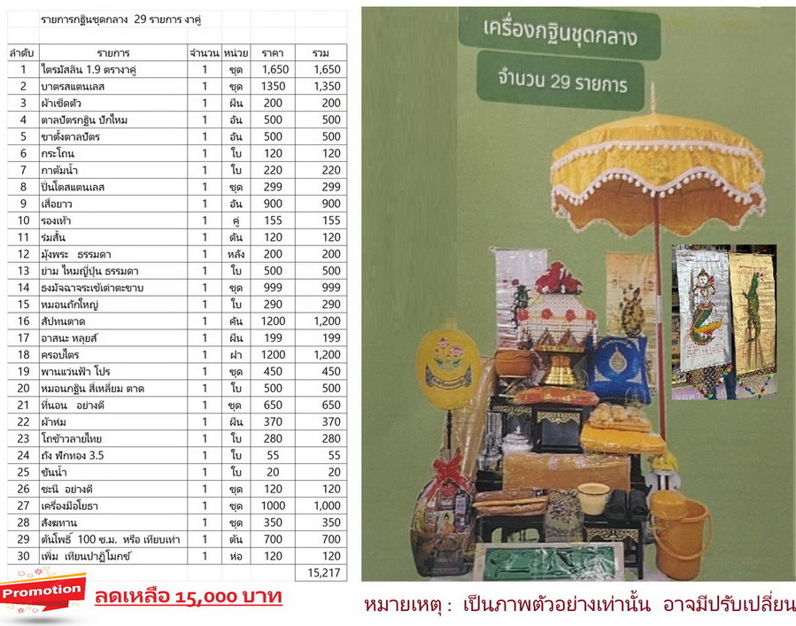 ตอบคำถามเกี่ยวกับ การจัดเครื่องกฐิน สะพานบุญ ใช้งบเท่าไหร่ ใช้อะไรบ้าง ![]() ขอราคาเครื่องกฐิน ขอสรุปคร่าวๆว่า เครื่องกฐิน สามารถจัดได้ทุกงบประมาณ แล้วแต่ลูกค้าต้องการค่ะ เบื้องต้น ลูกค้าดูคลิปนี้ก่อน จะอธิบายภาพรวมของกฐิน แล้วตั้งงบมา แล้วให้แอดมินทำราคาให้ได้ค่ะ ราคาขึ้นอยู่กับ เกรดและความสวยของสินค้า จัดได้ทั้งงานถูกและแพง มีบริการจัดส่ง เครื่องกฐิน ไปถึงบ้านลูกค้าที่ต่างจังหวัด หรือ ให้เราส่งไปที่วัด ที่ท่านเป็นเจ้าภาพได้ค่ะ *** ราคากฐิน คลิกตรงนี้ *** *** ตัวอย่างลูกค้า จัดกฐิน คลิกตรงนี้ *** *** ต้นกฐิน คลิกตรงนี้ *** *** งานตาลปัตร / ย่าม / สัปทน รับปักชื่อ คลิก *** *** คลิปวีดีโอ การจัดกฐินกองต่างๆของลูกค้าแต่ละคน ( ตามงบ ) *** ![]() คำอธิบายเพิ่มเติม หัวใจหลัก ของกฐิน คือ ผ้าไตร 1 ชุดหลัก สิ่งของอย่างอื่นทั้งหมด นอกเหนือจากนี้ เรียกว่า บริวารกฐิน ตามแต่เราศรัทธา ไม่ได้มีข้อบังคับตายตัว ว่าต้องใช้อะไรบ้าง ( ส่วนมากจัดคล้ายๆ เครื่องบวชพระใหม่ ) ของจำเป็น สำหรับ กฐิน : ผ้าไตร , ธงกฐิน , เทียนปาฏิโมกข์ ของเสริม : ต้นใส่เงินกฐิน , เครื่องใช้พระ , ของใช้วัดต่างๆ เช่น บาตรพระ ตาลปัตร ย่ามพระ อาสนะ สัปทน ของใช้จิปาถะต่างๆ สังฆทานต่างๆ ครอบไตร พุ่มกฐินสวยๆ เป็นต้น งบเท่าไหร่?? ตอบ : แล้วแต่เลยค่ะ บางคน หลักพัน บางคนหลักหมื่น สินค้ามีหลายเกรดราคา มีงานชาวบ้าน และ ชาววัง ตั้งงบประมาณ แล้วแจ้งแอดมิน ทำราคาให้ได้ค่ะ จัดกฐินชุดเล็ก ประมาณ 8,000 - 10,000 บาท บวกลบ จัดกฐินชุดกลางๆ ทั่วๆไป ประมาณ 15,000 - 20,0000 บาท จัดแบบชาววังพรีเมี่ยม 30,000 บาทขึ้นไป แล้วแต่ของ แล้วแต่ระดับความสวย มีบริการปักชื่อเจ้าภาพกฐิน - ตาลปัตร ย่าม สัปทน หมอนอิง มีจำหน่ายต้นกฐินสวยๆค่ะ หลากหลายแบบ สังฆทานมากมาย ราคาดูได้ทั้งหมด ทุกรุ่นทุกแบบ ที่เว็บเลยค่ะ ดูการจัดเครื่องกฐินของลูกค้างบต่างๆ ตามลิ้งค์ด้านบน ได้ค่ะ ![]() *** วีดีโอ ยูทูปเกี่ยวกับ กฐิน คลิก *** WEB : WWW.SAPHANBOON109.COM ![]() สินค้ามีหลายสี ![]() ![]() ถ้าเราเป็นเจ้าภาพหลัก ควรมีของให้ครบ ถ้าเราเป็นเจ้าภาพร่วม ก็เอาตามที่เราสะดวกค่ะ ทั้งนี้ ขึ้นอยู่กับ ความสะดวกในการเดินทางของแต่ละคนด้วยค่ะ ขอให้หลักๆ มีผ้าไตรเป็นองค์กฐิน ส่วนพวกจิปาถะ ก็ตามที่เราจะขนเท่าที่ไปได้ค่ะ เพราะบางคนไกล ขึ้นเขาก็มีค่ะ เดินทางยาก บางคน ถ้าเดินทางสะดวกก็ไปได้หมด ทั้ง เครื่องใช้พระ ของใช้วัดต่างๆ หม้อ เตา เครื่องมือช่าง พระพุทธรูป โต๊ะเก้าอี้ต่างๆ เสื่อวัด ไม้กวาด ตามแต่ศรัทธา ต้นกฐิน ก็ติดเท่าที่สวยงาม ที่เหลือใส่พาน ไม่จำเป็นต้องใส่จนล้นตัวนกยูง หรือ พุ่ม ใส่มากไปอาจรก ไม่ส