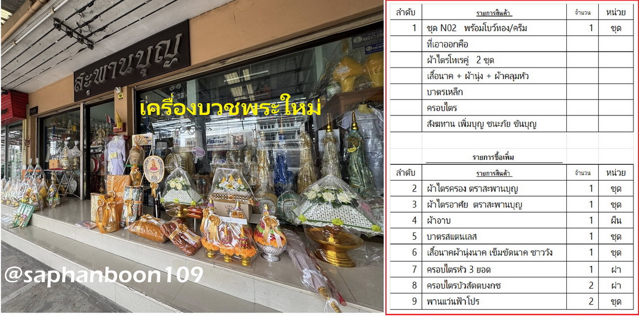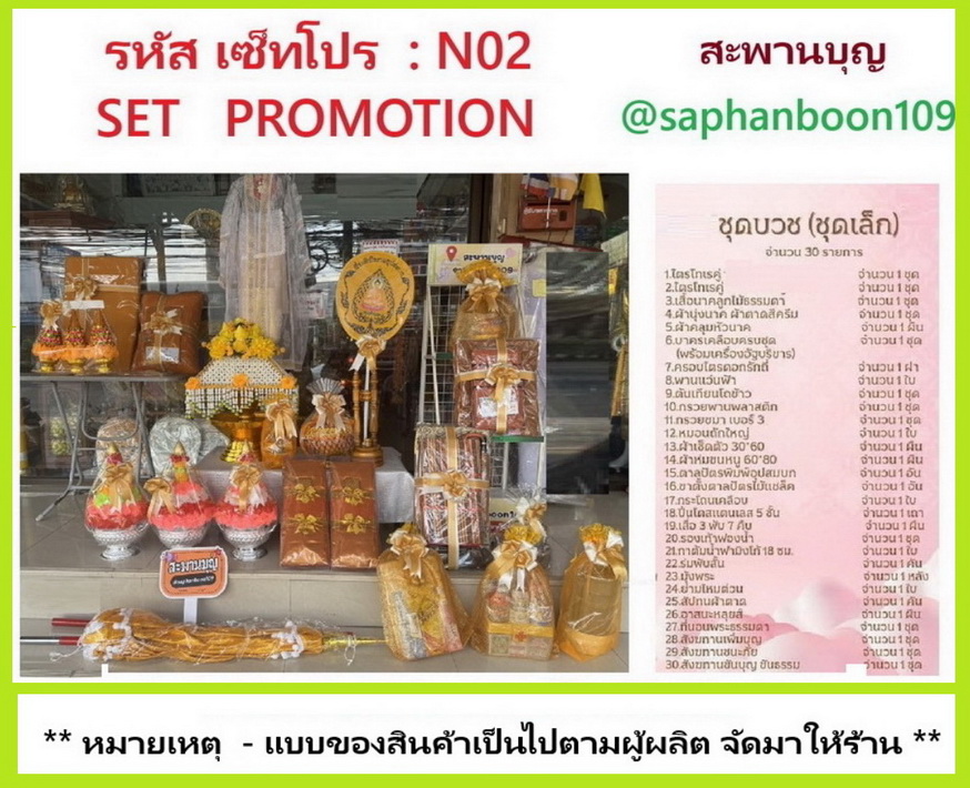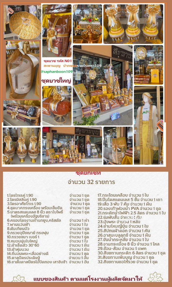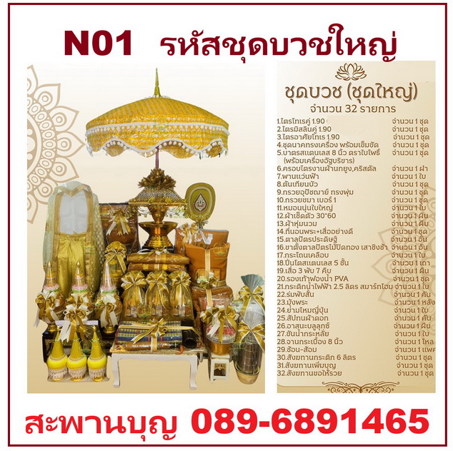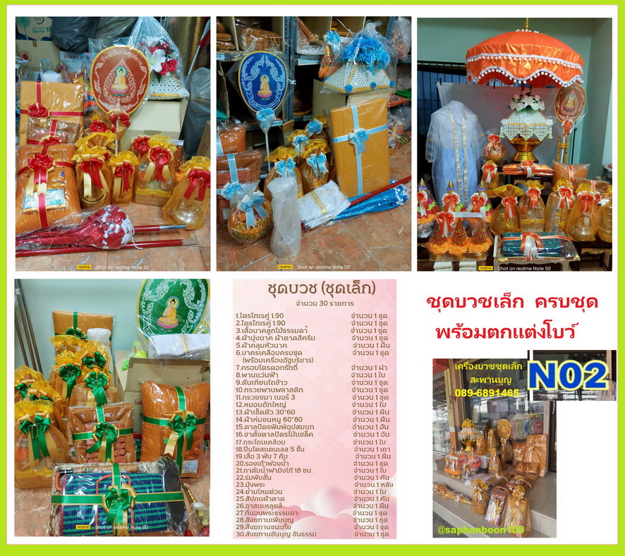 ตัวอย่างจัดชุดงานบวชนาค เครื่องบวชพระใหม่ ครบชุดเล็ก ชุดบวชชุดใหญ่ N01 N02