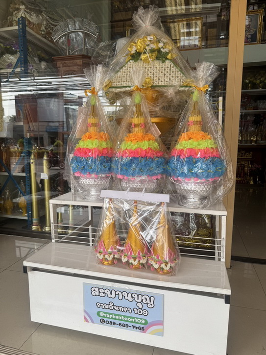 ลูกค้าสามารถเช็คราคาได้เองจากเว็บไซต์หรือไลน์ @saphanboon109 สินค้าที่จำหน่าย เครื่องบวช, เครื่องกฐิน, ชุดนาค, ผ้าไตร สังฆทาน, ถุงตาข่าย, งานปักชื่อบนตาลปัตร/ย่าม/สัปทน พานพุ่มเงินทอง, เครื่องทองน้อย, อุปกรณ์เฉลิมพระเกียรติ ครอบไตรหลายระดับราคา