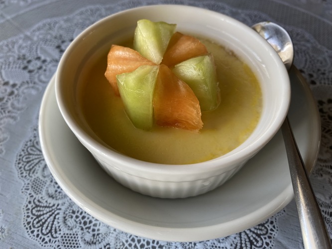 ภาพพุดดิ้งใส่แตงไทยคลายร้อน ทำไปหลายถ้วย แต่กระจัดกระจายกันไปเหลือไว้ให้ถ่ายภาพเดียว