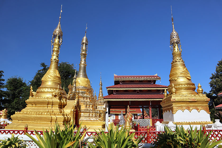 กลับเข้าตัวเมืองขุนยวม มาที่ วัดม่วยต่อ คำว่าม่วยต่อเป็นภาษาไทใหญ่แปลว่าพระธาตุ สร้างในปี พ.ศ.2397 เจดีย์ประธานทรงเครื่องแบบมอญ ล้อมด้วยเจดีย์บริวาร สร้างในปี พ.ศ.2439 เดิมมี 4 องค์ พังทลายเหลือ 3 องค์  ศาลาการเปรียญแบบไทใหญ่ที่สร้างใหม่หลายยุคหลายสมัย |  ต้นลิ้นจี่ที่ในหลวง ร.9 ทรงปลูกในปี พ.ศ.2510 ข้างหลังมีต้นที่พระพันปีปลูกด้วยนะ |