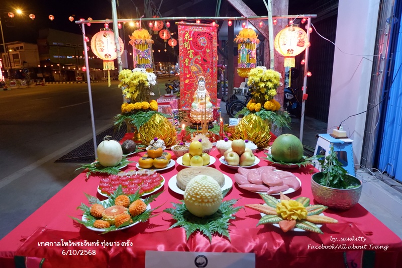 สวัสดีค่ะ วันนี้ที่รอคอย กลับมาอีกครั้งกับงานไหว้พระจันทร์ ที่ทุ่งยาว หลังจากที่สาวไม่ได้ไปมาหลายปี โดยในปีนี้จัดตั้งแต่วันที่ 30 ก.ย. - 6 ต.ค. ณ บริเวณตลาดสดเทศบาลตำบลทุ่งยาว ส่วนตัวสาวไปมาเมื่อวานคือวันที่ ๖ ตุลาคม ซึ่งเป็นวันไหว้พระจันทร์ เพื่อดูโต๊ะไหว้อันงดงามนั่นเองสำหรับงานไหว้พระจันทร์ ถือเป็นงานประจำปีของตำบลทุ่งยาว อำเภอปะเหลียนจังหวัดตรัง ที่จัดสืบทอดกับมากว่า ๑๐๐ ปีแล้ว โดยมีแม่งานหลักคือ เทศบาลตำบลทุ่งยาวสำหรับบรรพชนของ "ชาวทุ่งยาว" กลุ่มแรกๆ ได้เดินทางมาขึ้นเรือที่ท่าเรือเกาะสุกร แหลมตะเสะ หาดสำราญ หยงสตาร์ และทุ่งหว้า ก่อนจะย้ายมาตั้งหลักแหล่งที่ "ตำบลทุ่งยาว" ในปัจจุบันนี้ คือ "ตระกูลโค้ว" หรือ "แซ่โค้ว ๑๐ คน" ซึ่งเดินทางมาจากตำบลปั๊กซัวเถา อำเภอโผวเล้ง จังหวัดแต้จิ๋ว มณฑลกวางตุ้ง ต่อมาจึงมีกลุ่มอื่นๆ เดินทางเข้ามาอาศัยอยู่ภายหลัง เช่น ตระกูลแซ่ตั้ง แซ่เอี้ยว แซ่เตียว แซ่เฮง แซ่ลิ้ม แซ่อึ้งชาวทุ่งยาวที่มีบรรพบุรุษเป็นชาวจีนแต้จิ๋ว จึงให้ความสำคัญกับประเพณีวัฒนธรรมของชาวจีนที่ถือปฏิบัติสืบต่อกันมาตั้งแต่ยุคสมัยโบราณ โดยเฉพาะอย่างยิ่งคือ “ประเพณีไหว้พระจันทร์”เพื่อเป็นการอนุรักษ์และสืบสาน "ประเพณีไหว้พระจันทร์" ให้คงอยู่สืบไป อีกทั้งเพื่อเป็นสื่อกลางให้ชาวไทยเชื้อสายจีนได้มาร่วมกันรำลึกถึงบรรพบุรุษ "เทศบาลตำบลทุ่งยาว" จึงได้มีการจัดงานดังกล่าวนี้ขึ้นเป็นประจำทุกปี โดยไฮไลท์ของปี ๖๘ ที่สาวไปมา คือ คืนวันที่ ๖ ตุลาคม ในวันนั้นเราจะได้เห็นภาพโต๊ะไหว้พระจันทร์ที่แทบทุกบ้านตั้งใจจัดอย่างปราณีต และงดงามเพื่อวันสำคัญวันนี้นอกจากนี้ภายในงานยังมีการประกวดโต๊ะไหว้ โดยแบ่งเป็น ๒ ประเภทคือ อนุรักษ์ศรัทธา และสวยงาม สำหรับปีนี้มีโต๊ะไหว้พระจันทร์ถึง ๗๐ กว่าโต๊ะ ส่วนคนที่ชอบชม ชิม ยังมีการแสดงบนเวที และร้านอาหารมาออกจำหน่ายกว่า ๕๐ ร้านด้วย
