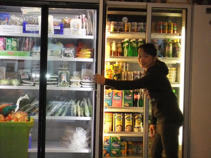 ตู้แช่แข็งตู้นี้เป็นดาวเด่นของร้านค่ะ ฝรั่งตื่นตาตื่นใจมากกับตีนไก่ หมึก ปูตัวเล็ก(สำหรับตำส้มตำ) กึ๋น หัวใจ ตับที่แช่แข็ง ชอบถามว่า มันกินได้ด้วยเหรอ? พวกเธอกินกันด้วยเหรอของพวกนี้??