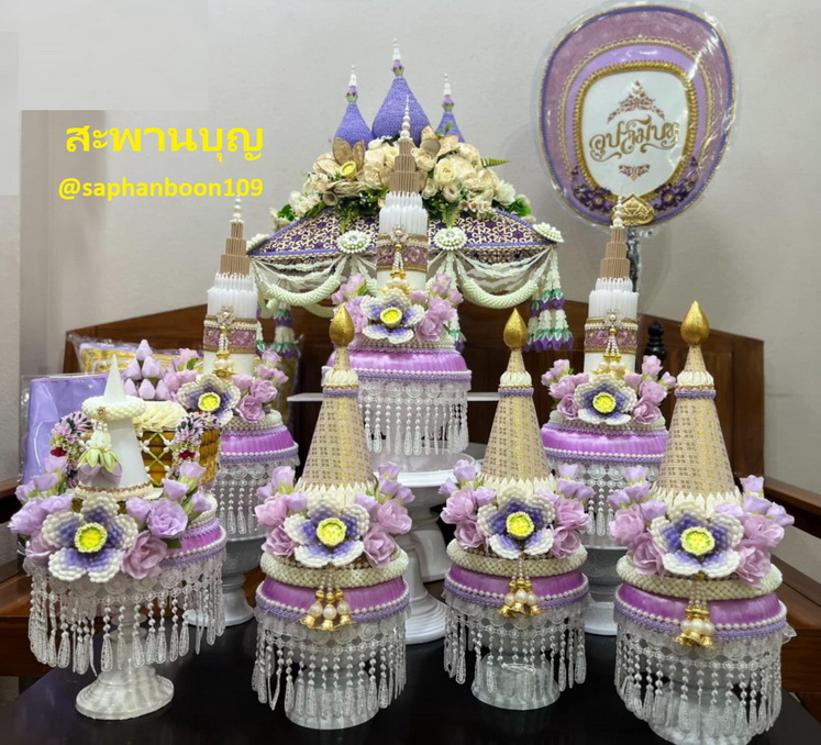 รวมภาพงานประดิษฐ์ชาววังสวยๆ สีม่วง งานบวชธีมวันเสาร์