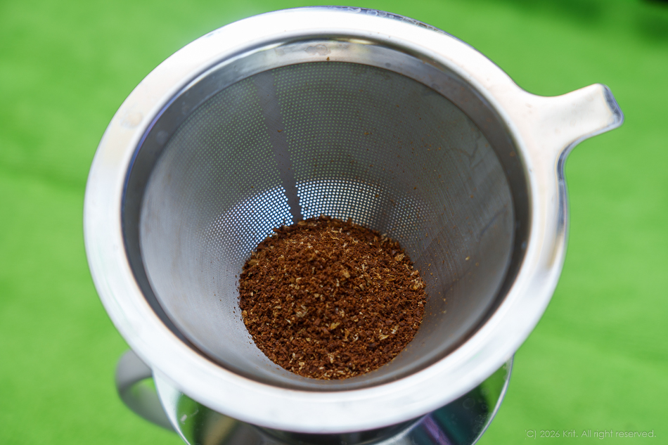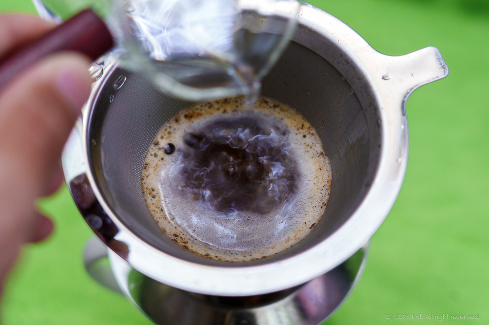 2026.02.20 วันว่างมาชงกาแฟกินกันดีกว่าครับ ![]() สวัสดีครับ ช่วงนี้หลายๆคนน่าจะได้พักกันบ้างในช่วงเทศกาลตรุษจีนอย่างนี้ (หวังว่าจะครับ วันนี้ผมก็ว่างๆครับ แถมช่วงนี้ก็ได้มีโอกาสลองชงกาแฟบดจากเมล็ดกินเองบ้าง ก็เลยมาเล่าสู่กันฟังสนุกๆะครับ ถ้าว่ากันตามความชอบส่วนตัวของผมเองแล้ว กาแฟที่ชอบก็คงหนีไม่พ้น Espresso ครับ แต่ว่า... ซึ่งถ้าดูจากการบริโภคกาแฟของผมแล้ว (เอาแค่กาแฟอย่างเดียว) ผมกินกาแฟแค่ 1-3 แก้วในช่วง 2 อาทิตย์เท่านั้นเอง ก็เลยได้ขอสรุปว่า ถ้าอยากกิน Espresso ก็...ไปกินที่ร้านดีกว่า ถ้าอยากกินกาแฟที่บ้านก็ชงแบบที่ร้านไม่มีแล้วกัน ผมก็เลยต้องพับโครงการเครื่องชงกาแฟไป แล้วหันมา drip กาแฟกินแทน ถือว่าเป็นการเปลี่ยนบรรยากาศครับ ![]() เมล็ดกาแฟที่ใช้ ผมเป็นคนหมู่น้อยครับ ชอบกาแฟเปรี้ยว ได้รสผลไม้ กลิ่นหอมๆ คิดว่ากาแฟคั่วเข้มไม่เหมาะกับตัวเองเพราะขม กินยากไปหน่อยครับ ![]() ผมได้เมล็ดกาแฟคั่วอ่อนมาจากร้านที่เป็นโรงคั่วกาแฟแถวบ้าน (ก็ไม่แถวบ้านเท่าไหร่นะ ปั่นจักรยานไป 30 กว่ากิโลเอง ซื้อมา 250g ราคา 150 บาท คั่วมาราวๆอาทิตย์นึงครับ ตามที่คำนวณไว้ก็น่าจะกินได้ 3-4 เดือนสบายๆ ผมเก็บกาแฟไว้ในกระป๋องสุญญากาศที่ทางร้านแนะนำ แต่หาซื้อ online เองนะครับ ![]() สัดส่วนกาแฟที่ใช้ ผมเริ่มต้นด้วยการถาม Google ก่อนเลย หลังจากซื้อแก้วกาแฟมา ลองตวงน้ำใส่ดูก็ทราบว่าแก้วมันขนาด 150ml Google บอกว่า ให้ใช้กาแฟ 10.7g กับน้ำ 170-180ml แต่หลังจากลองดริปไปเมื่ออาทิตย์ก่อน รู้สึกว่ารสจางไปหน่อยครับ (แต่กลิ่นดีมากครับ) คราวนี้ผมเลยปรับสัดส่วนนิดหน่อย เพิ่มปริมาณกาแฟเป็น 12g แล้วก็ลดปริมาณน้ำลงเหลือ 150ml พี่ที่ร้านบอกว่า ไม่จำเป็นต้องชงกาแฟเต็มแก้ก็ได้ เอาที่เราพอใจดีกว่า พี่เขาว่าไง ผมก็ว่าตามน้านนน ![]() ![]() เท่าที่ทราบ การบดกาแฟสำหรับดริปต้องบดหยาบหน่อยครับ ผมใช้ก้านบดมือ ตั้งระดับการบดที่ 38 จาก 54 ระดับ ในคู่มือของก้านบดบอกว่าให้ใช้ 36-44 clicks ...ก็เอาแบบตามความรู้สึกตัวเองก่อน ประกอบร่างแล้วก็ 3 2 1 . . . หมุนเลยยย!!! ![]() ![]() ผมชอบแรงต้านจากการบดกาแฟมากเลยครับ รู้สึกพอใจกับแรงต้านในทุกรอบการหมุนเลย สนุกมาก!! ![]() ![]() ส่วนของกรวยดริป...ผมตัดความยุ่งยากของการใช้กระดาษกรองด้วยการใช้กรวยโลหะที่มีรูพรุนมาให้แทนครับ เท่าที่ลองใช้ดูก็พอใจกับมันนะครับ ทำความสะอาดง่าย ไม่เปลืองค่ากระดาษกรอง ไม่มีตะกอนกาแฟหลุดลงในแก้วเลย ![]() ต้มน้ำเดือดแล้ว ก็ตวงน้ำใส่ beaker ครั้งแรก 60ml ครับ เทไปก่อนหน่อยนึง พี่ที่ร้านกาแฟแนะนำมาว่า ให้เทน้ำร้อนกระตุ้นซักหน่อยนึง รอ 1 นาทีให้กาแฟมันตื่นก่อน จะทำให้กาแฟมันคลายรสและกล