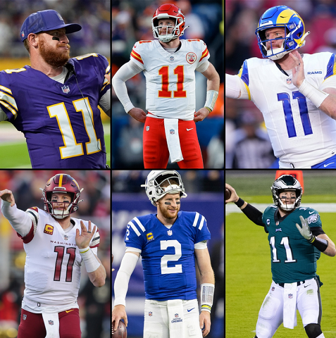 ประวัติ QB Carson Wentz คาร์สัน เจมส์ เวนซ์ คาร์สัน เจมส์ เวนซ์ (เกิด 30 ธันวาคม 1992) เป็นควอเตอร์แบ็กอเมริกันฟุตบอลอาชีพของทีมมินนิโซตา ไวกิงส์ ในลีกอเมริกันฟุตบอลแห่งชาติ (NFL) เขาเล่นฟุตบอลระดับวิทยาลัยให้กับทีมนอร์ทดาโคตา สเตท ไบสัน และคว้าแชมป์ NCAA FCS ระดับชาติได้สองสมัยติดต่อกันในฐานะตัวจริง เวนซ์ได้รับเลือกเป็นอันดับสองโดยฟิลาเดลเฟีย อีเกิลส์ ในการดราฟต์ NFL ปี 2016 ทำให้เขาเป็นผู้เล่น FCS ที่ถูกดราฟต์มากที่สุด ฤดูกาลที่ประสบความสำเร็จมากที่สุดของเวนซ์คือปี 2017 เมื่อเขาช่วยให้อีเกิลส์คว้าอันดับสูงสุดของคอนเฟอเรนซ์ ก่อนที่จะได้รับบาดเจ็บจนต้องจบฤดูกาล ซึ่งนำไปสู่การคว้าแชมป์ซูเปอร์โบวล์ครั้งแรกของแฟรนไชส์ในซูเปอร์โบวล์ครั้งที่ 52 โดยมีนิค โฟลส์เป็นควอเตอร์แบ็ก เวนซ์ได้รับรางวัล Pro Bowl และ All-Pro ทีมสอง เวนซ์ช่วยพาฟิลาเดลเฟียกลับเข้าสู่รอบเพลย์ออฟในอีกสองฤดูกาลถัดมา แต่อาการบาดเจ็บที่เพิ่มมากขึ้นก็ทำให้เขาไม่สามารถลงเล่นได้อีกครั้ง หลังจากเสียตำแหน่งตัวจริงไปเนื่องจากผลงานที่ลดลง เวนซ์ใช้เวลาสี่ฤดูกาลถัดมาในฐานะตัวจริงและตัวสำรองกับทีมอินเดียนาโพลิส โคลท์ส, วอชิงตัน คอมมานเดอร์ส, ลอสแอนเจลิส แรมส์ และแคนซัส ซิตี้ ชีฟส์ ในเดือนสิงหาคม ปี 2025 เขาได้เซ็นสัญญากับทีมไวกิงส์ ชีวิตช่วงแรก เวนซ์เกิดที่เมืองราลี รัฐนอร์ทแคโรไลนา และย้ายไปอยู่นอร์ทดาโคตาพร้อมกับครอบครัวเมื่ออายุ 3 ขวบ เขาเล่นตำแหน่งควอเตอร์แบ็กและดีเฟนซีฟแบ็กให้กับทีมฟุตบอลที่โรงเรียนมัธยมเซนจูรีในเมืองบิสมาร์ก และยังเล่นบาสเกตบอลและเบสบอลที่โรงเรียนอีกด้วย ด้วยแรงบันดาลใจจากพี่ชาย เขาได้เล่นฮอกกี้น้ำแข็งมาจนถึงชั้นมัธยมปลาย ก่อนที่จะตัดสินใจเข้าร่วมทีมบาสเกตบอล สมัยเรียนปีหนึ่ง เวนซ์มีส่วนสูง 5 ฟุต 8 นิ้ว (1.73 เมตร) และเพิ่มขึ้นเป็น 6 ฟุต 5 นิ้ว (1.96 เมตร) ในปีสุดท้าย และสำเร็จการศึกษาในปี 2011 ในฐานะนักเรียนที่เรียนดีที่สุดของชั้นเรียน อาชีพในวิทยาลัย เวนซ์เข้าเรียนที่มหาวิทยาลัยนอร์ทดาโคตาสเตต โดยลงเล่นในฤดูกาลแรกกับทีมไบสัน และคว้าแชมป์ฟุตบอลแชมเปียนชิพซับดิวิชั่น (FCS) สมัยแรกภายใต้การคุมทีมของเครก โบห์ล หัวหน้าโค้ชปีที่ 9 ในปี 2012 เวนซ์เป็นควอเตอร์แบ็กสำรองของบร็อค เจนเซน และลงเล่นในเกมแรกในระดับวิทยาลัยเมื่อวันที่ 22 กันยายน เขาขว้างบอลสำเร็จทั้ง 8 ครั้ง ระยะ 93 หลา และทำทัชดาวน์ครั้งแรกแทนเจนเซน ในเกมที่เอาชนะแพรรีวิว เอแอนด์เอ็ม แพนเธอร์ส 66-7 เวนซ์จบฤดูกาลด้วยการส่งบอลสำเร็จ 12 จาก 16 ครั้ง ระยะ 144 หลา และทำทัชดาวน์ได้ 2 ครั้ง ในปี 2013 เวนซ์เป็นควอ
