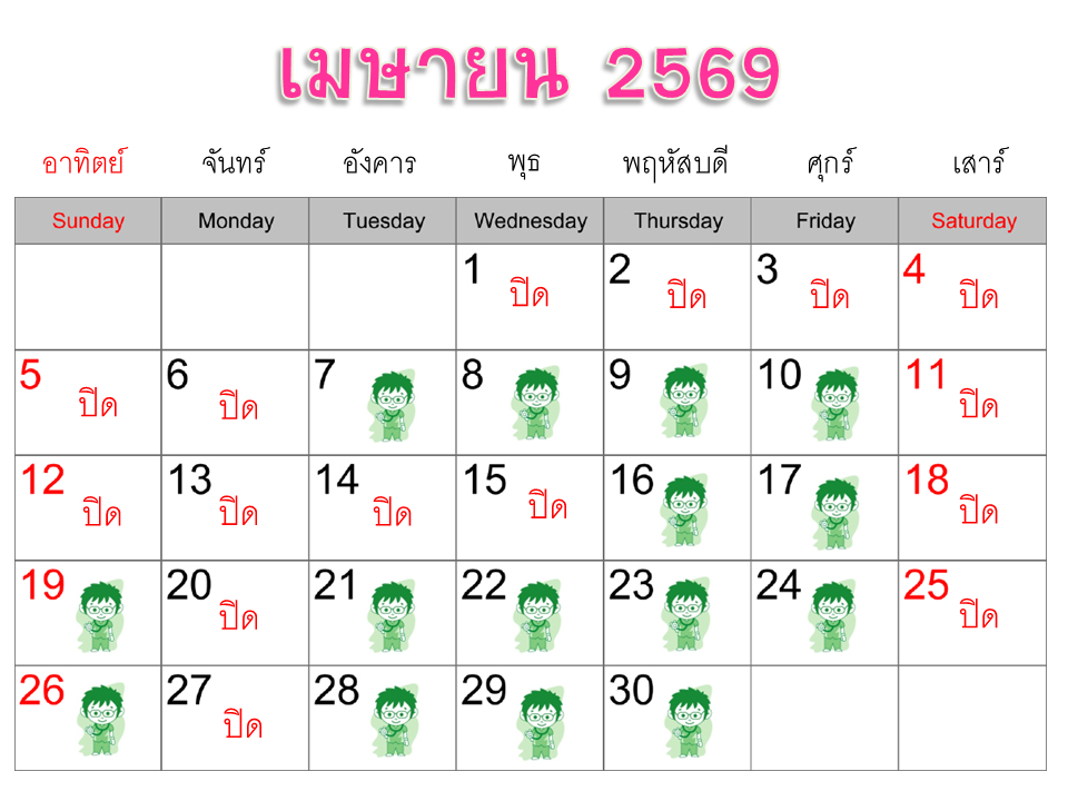 ตารางการออกตรวจ: เมษายน 2569