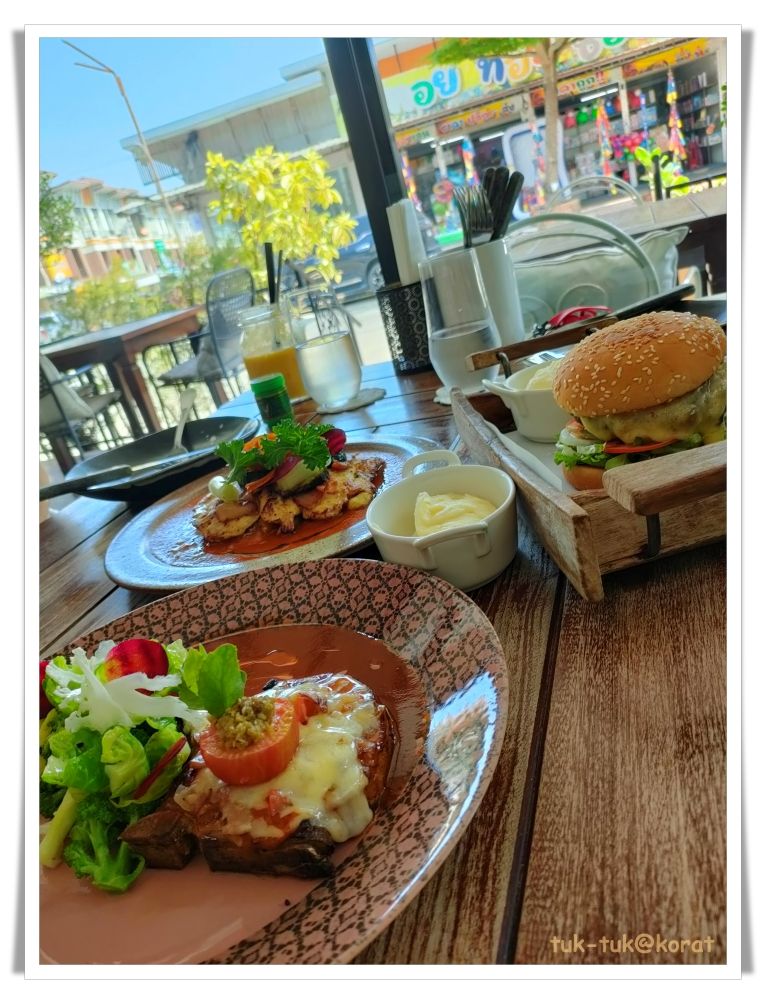 เบอร์เกอร์เนื้อ สเต็กหมู และ สเต็กเนื้อ
