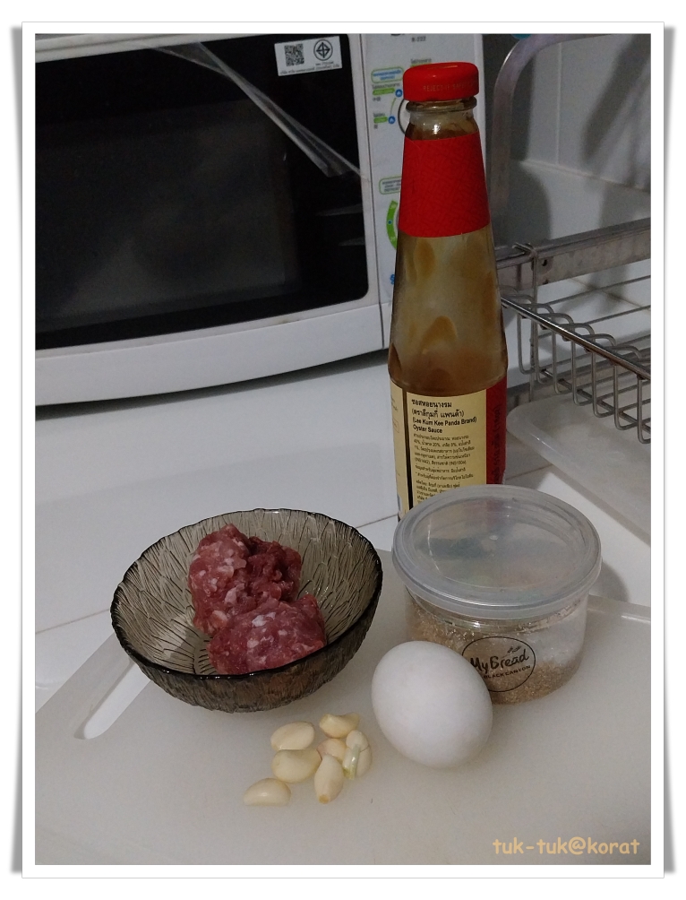 หลักๆ ไข่เค็ม น้ำมันหอย น้ำตาล หมูสับ กระเทียมสับ