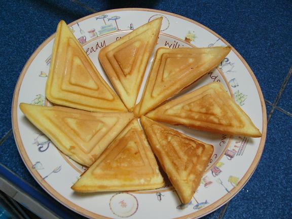 แบบว่าอยากกินขนมไข่ร้อน ๆ จากเตามาก หาซื้อตามที่ขายใส่ถุงกินแล้วเหมือนขนมไข่แบบทั่วไป คือไม่ใช่ที่อยากกิน ก็เลยเปิดสูตรเฟ้นหาวิธีการทำลองผิดลองถูกไป ท้ายแล้วก็ได้ผลออกมาเป็นที่น่าพอใจ ก็เลยอยากจะขอนำเสนอการทำขนมไข่สำหรับคนที่อาจใจตรงกันกับดิฉัน แบบว่าทำทานเองแล้วก็ได้แลกเปลี่ยนให้คนอื่นได้ไปลองทำดู ง่าย ๆ เพียงแค่มีเตาปิ้งแซนวิช ก็สามารถทำทานเองที่บ้าน ทั้งครอบครัวเลยได้สบาย ๆ เริ้มต้นที่ อุปกรณ์ที่ใช้ในการทำ 1. เครื่องอบแซนวิช 2. ที่ตีไข่แบบใช้มือ ถ้าใครมีแบบไฮเทคก็นำมาใช้ได้เลยจำพวกตีไข่ไฟฟ้า 3. ถ้วยตวง 4. ช้อนตวง ส่วนผสม 1. แป้งสาลีตราบัวแดง 1 ถ้วยตวง 2. ไข่ไก่ 1 ถ้วยตวง (ประมาณ 5 ฟอง) 3. น้ำมะนาว 1 ช้อนชา 4. ผงฟู 1 ช้อนชา 5. ผงวานิลา 1 ช้อนชา 6. น้ำตาลทราย 1 ถ้วยตวง 7. เนย สำหรับทาผิวเตาอบแซนวิช วิธีทำ 1. ตีไข่ให้ฟูขึ้นโดยใช้ความเร็วสูง ใช้เวลาต่อเนื่องไม่หยุด จนไข่ฟูขึ้น มาก 2. ค่อย ๆ ใส่น้ำตาลจนหมด แล้วตีไข่จนฟูตั้งยอดได้แล้ว 3. ร่อนแป้งใส่ลงไปในไข่ที่กำลังตี หาผู้ช่วยมาช่วยร่อน หรือทำเอาแบบใช้สองมือ 4. ใส่น้ำมะนาว ผงฟู ผงวานิลาลงไป ตีจนเข้ากันดี 5. เตรียมเครื่องทำแซนวิชเสียบไฟให้ร้อน นำเนยทาให้ทั่ว 6. หยอดส่วนผสมที่เข้ากันดีลงในไปบล็อกทำแซนวิช ทั้ง 2 ฝั่ง (ซ้าย-ขวา) 7. ปิดฝาอบไว้ประมาณ 5- 7 นาที (ไฟตัดเองอัตโนมัต) 8. ใช้ส้อมแคะขึ้นมา ใส่จานสามารถทำใด้ประมาณ 12 ชิ้น รับประทานร้อน ๆ หอม นุ่ม มันด้วยเนย ขอบอกว่าอร่อยจริง ๆ ภาพประกอบ อุปกรณ์ในการทำขนมไข่