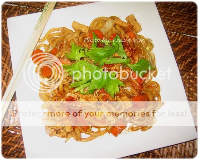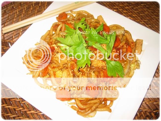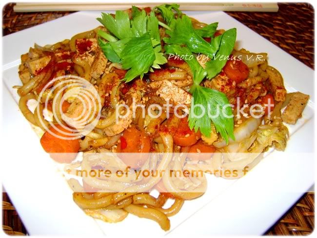 ภาค 6 วันนี้ขอเอาเมนูเจแบบเส้น ๆ มาฝากกันคะ มี 4 เมนูด้วยกัน คือ ผัดไทยเจ ผัดซีอิ๊วเจ ผัดอุด้งเจและผัดขี้เมามักกะโรนีเจ ขอบอกอีกรอบ (คงจะบอกในทุก ๆ บล็อกเจเลยละคะ) ว่าเจบ้านนี้ทำแบบตามมีตามเกิด เนื่องจากไกลบ้าน พวกพริกแกงเจ กะปิเจ โปรตีนเกษตรหรือเนื้อเจต่าง ๆ หาไม่ได้เลยคะ ที่ขายที่นี่ จะมีแต่เต้าหู้และพวกเนื้อมังฯ ที่มีส่วนผสมของไข่และของต้องห้ามเจ ก็เลยเอามาทำไม่ได้ ใช้ได้แต่เต้าหู้อย่างเดียว ถ้าบ้านคุณผู้อ่านมีของพวกนี้ จะใส่ไปด้วยก็ตามสบายคะปล. จขบ. ไม่ใช่ Expert อาหารเจนะคะ (ที่จริงก็ไม่ใช้ Expert ในการทำอาหารอื่นด้วย แหะ ๆ) ผิดถูกยังไง ต้องขออภัยไว้ ณ ที่นี้ด้วยคะผัดไทยเจ เครื่องปรุง เส้นเล็กหรือเส้นจันทร์แช่น้ำจนนิ่ม 200-250 กรัม หัวไชโป๊เค็มสับละเอียด นำไปล้างน้ำให้ความเค็มลดลง เต้าหู้หั่นเต๋า ถั่วงอกเด็ดหาง แซเลอรี่หรือขึ้นฉ่ายหั่นฝอย น้ำมันมะกอก น้ำตาลปี๊บ 5 ชต. น้ำมะขามเปียก 5 ชต. ซีอิ๊วขาว 4 ชต. น้ำเปล่า 4 ชต. มะนาวผ่าซีก ถั่วงอกเด็ดหางและแครอทขูดฝอย (สำหรับตกแต่งจาน) ถั่วลิสงป่นและพริกป่น (สำหรับปรุงรสเพิ่ม)วิธีทำ 1. หั่นผักไว้ให้เรียบร้อยและล้างให้สะอาด ลวกเส้นพอสุก (ส่วนตัวชอบลวกเส้นก่อนคะ เนื่องจากที่นี่เป็นเส้นแบบสำเร็จ ถ้าบ้านไหนชอบผัดแบบเส้นแช่น้ำจนนิ่ม ก็ตามสบายเลยนะคะ) ผสมเครื่องปรุงน้ำซอส คือ น้ำตาลปี๊บ น้ำมะขามเปียก ซีอิ้วขาวและน้ำเปล่า เข้าไว้ด้วยกัน ชิมให้ได้รสชาติที่ต้องการ 2. จากนั้นเริ่มผัดเครื่อง โดยตั้งกระทะ ใส่น้ำมันมะกอกลงไป พอน้ำมันเริ่มร้อนก็ให้ใส่หัวไชโป๊เค็มสับลงไปผัด ผัดพอหัวใชโป๊เริ่มสลด ก็ให้ใส่น้ำซอสตาม เคี่ยวจนน้ำซอสข้นเหนียวเล็กน้อย ก็ให้ใส่เต้าหู้หั่นเต๋าและเส้นเล็กตาม คลุกเคล้าให้เข้ากัน 3. ผัดต่อไปซัก 2-3 นาที ให้มีกลิ่นหอม ขาดเหลืออะไร เติมได้ตอนนี้ จากนั้น ใส่ถั่วงอกและแซเลอรี่หรือขึ้นฉ่ายหั่นฝอยลงไป คลุกเคล้าให้เข้ากันอีกรอบ ผัดต่ออีก 2-3 นาที ปิดไฟ ตักใส่จาน โรยหน้าด้วยแซเลอรี่หรือขึ้นฉ่ายหั่นฝอย ส่วนถั่วลิสงคั่วและพริกป่นโรยไว้ข้าง ๆ เสิร์ฟพร้อมกับผักสดและมะนาวผ่าซีก ผัดไทยเจ แบบใกล้ ๆ แค่นี้เองคะ อร่อยแบบเส้น ง่าย ๆ ได้บุญผัดซีอิ๊วเจ เครื่องปรุง เส้นใหญ่แช่น้ำจนนิ่ม (บ้านนี้ใช้เส้นสำเร็จแบบแห้งคะ ถ้าบ้านไหนมีเส้นสดก็ตามสบายเลยนะคะ) หัวไชโป๊เค็มสับละเอียด นำไปล้างน้ำให้ความเค็มลดลง เต้าหู้หั่นเต๋า คะน้าต้นใหญ่ปอกเปลือกตรงโคน หั่นเฉียง กะหล่ำปลีหั่นซีก (อย่างที่บอกว่าบ้านนี้ใช้กะหล่ำปลีรูปหัวใจคะ เพราะอ่อนเหมือนกะหล่ำปลีบ้านเรา) น้ำมันมะกอก ซ