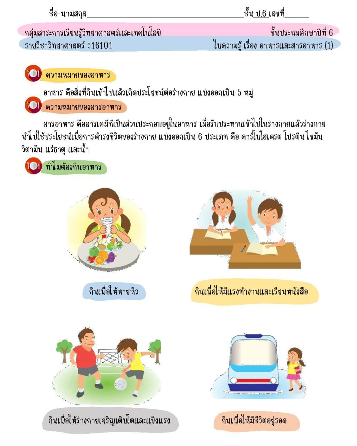 สรุปวิชาวิทยาศาสตร์ชั้นประถมศึกษาตอนปลาย (ป.6) เรื่องอาหารและสารอาหาร [การเรียน]