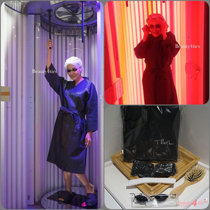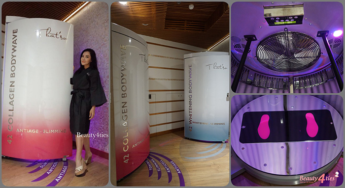 แก่...อ้วน!!! กรี๊ดดดด...ใครทักอย่างนี้..เจ้ตบนะ!! 555+ ทุกอย่าง..มันมีวันเวลาของมันค่ะ แต่!! เราจะให้มันมาช้าที่สุด!! โดยเฉพาะความแก่!! โอ๊ย!! ฟังแล้วเจ็บ!! แน่นอนที่สุด..อะไรทำได้!! ไม่เดือนร้อน หรือไม่เจ็บตัวจนเกินไป เจ้จะทำ!! อย่างเช่นวันนี้ที่จะขอมาพูดถึงเลยค่ะ เพราะพี่วิมีโอกาสที่ดีมากๆ ที่ได้ไปเข้าคอร์ส "การเพิ่มคอลลาเจนให้กับผิว" ที่ That'so สาขา Emquartier ชั้น 4 นวัตกรรมใหม่ เพื่อความอ่อนเยาว์และกระชับสัดส่วน หนึ่งในผู้นำนวัตกรรมความงามจากอิตาลีสู่เมืองไทย ![]() เรียกว่าเป็นระดับ World-Class เลยค่ะ และได้รับความนิยมมากในกลุ่ม Celebrity และดารา Hollywood มีถึง 58 สาขาทั่วโลก และหลายประเทศใน Asia ค่ะ ![]() ซึ่งมีโปรแกรมในการดูแลผิวและร่างกาย หลายอย่างที่น่าสนใจมากๆ แต่มี 1 โปรแกรมที่ตรงกับ ความต้องของผิวและรูปร่างของพี่วิมากๆ นั่นคือ Anti-Aging & Firming Solutions เป็นการเข้าเครื่อง Collagen Bodywave ซึ่งพี่วิเรียกว่า "ตู้อบคอลลาเจน" ค่ะ โดยปกติแล้วในแสงแดดอ่อนๆ จะมีคลื่นของแสงอยู่หนึ่งช่วง ที่มีประโยชน์ต่อผิว ต่อร่างกายของคนเราค่ะ ซึ่งอุดมไปด้วยวิตามินต่างๆ จนทำให้เกิดการค้นคว้าว่าแสงนี้คืออะไร และค้นพบว่า "ความยาวคลื่นที่ 633 นาโนเมตร" ![]() เป็นแสงอาทิตย์สีชมพู ที่มีประโยชน์ ในการกระตุ้นการสร้างคอลลาเจนในผิว ทำให้ผิวสดใสเปล่งปลั่ง ลดเลือนปัญหาริ้วรอยแห่งวัย และช่วยกระชับรูขุมขน โดยการใช้เทคโนโลยีสมัยใหม่ มาผสมผสานกับธรรมชาติ จนเกิดเป็นแสงจำลอง ที่ใกล้เคียงกับธรรมชาติมากที่สุด เพื่อช่วยสร้างคอลลาเจนให้ผิวพรรณได้อย่างล้ำลึก พร้อมๆ ไปกับการกระชับรูปร่างไปในตัว ![]() ไม่ต้องกลัวโป๊หรือไม่สะดวกเรื่องชุดในการเข้าตู้อบนะคะ เพราะที่ That'so จะมีทั้งห้องส่วนตัวและห้องคู่สำหรับครอบครัวด้วยค่ะ มีชุดให้เปลี่ยนพร้อมทั้งผ้าบังทรง กางเกงชั้นใน หมวกคลุมผม แว่นตา และเสื้อคลุมค่ะ ![]() ในขณะที่เรายืนอบผิวอยู่ในตู้ พื้นที่เรายืนก็จะสั่นสะเทือน ตามโปรแกรมที่เลือกให้เหมาะสมกับปัญหารูปร่างของแต่ละคน ด้วยระบบ Beauty Vibro Plate Plus จะช่วยในเรื่องลดเซลลูไลท์ส่วนเกิน ช่วยให้ร่างกายกระชับมากยิ่งขึ้น **ส่วนตู้สีฟ้า..เหมาะสำหรับสาวๆ ที่อยากอบผิวให้ขาวกระจ่างใส และกระชับหุ่นไปในตัว ซึ่งดูขั้นตอนได้จาก VDO สั้นๆ ที่พี่เคยอัดไว้ที่ลิ้งค์นี้ได้เลยค่ะ https://www.facebook.com/beauty4ties/videos/892537820784725 ก่อนเข้าตู้เพื่ออบคอลลาเจนเราต้องฉีดสเปรย์ 633 Light Attivator ที่ผิวหน้าและร่างกายก่อนค่ะ เพื่อเป็นการนำคลื่นแสง ใช้เวลาอยู่ในตู้เพียงครั้งละ 15 นาที ถ้าอยากให้ได้ผลที่ชัดเจนมากๆ และรวดเร็วควรทำทุกวัน หรืออย่างน้อยที่สุดอาทิตย์ละ 3-4 ครั้งอย่าง