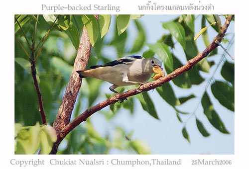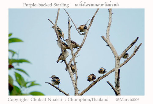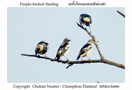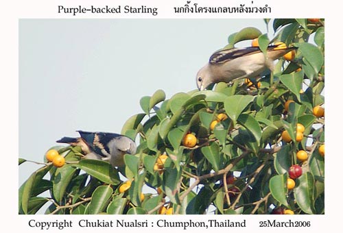 นกเอี้ยงดำปักษ์ใต้ เป็นนกประจำถิ่นภาคใต้พบตั้งแต่จังหวัดชุมพรลงไปถึงนราธิวาสโน่น แต่ก็ใช่ว่าจะหาดูได้ง่ายสักเท่าไหร่ ลักษณะเด่นลำตัวสีดำเหลือบเขียว ตาแดงในตัวเต็มวัย แต่ถ้าไม่เต็มวัยบริเวณใต้ท้องจะมีลายขีด ในจังหวัดชุมพรพบเห็นได้ช่วงผลไม้สุกหรือช่วงทำรังวางไข่ครับพบเห็นได้ทุกวันบริเวณโรงเรียนอนุบาลจังหวัดชุมพร ผมคิดว่านกเอี้ยงดำปักษ์ใต้ที่ชุมพรมีการเคลื่อนย้ายถิ่นหากินครับ หมายความว่าช่วงเดือนนี้ลูกไม้สุกที่ไหนก็จะเคลื่อนไปจุดนั้นๆ ซึ่งก็มักจะใกล้เคียงกันแล้วก็วนไปตามจุดต่างๆ ต่อไป
