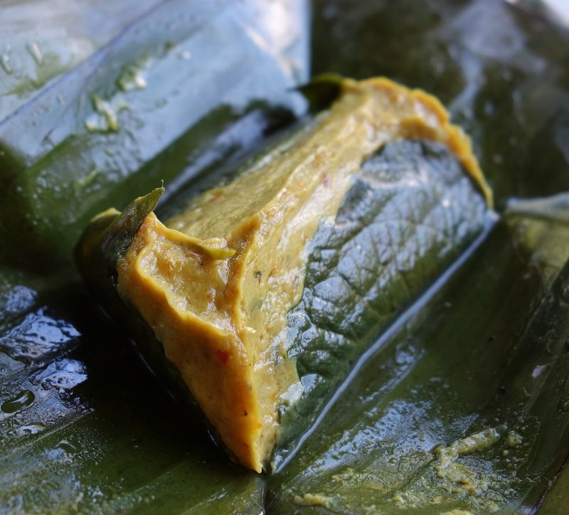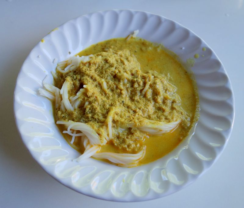 เวลาทานขนมจีน ชาวภูเก็ตจะทานห่อหมกปลาด้วย เป็นห่อหมกแบบปักษ์ใต้ใส่พริกแกงใต้ผสมขมิ้น