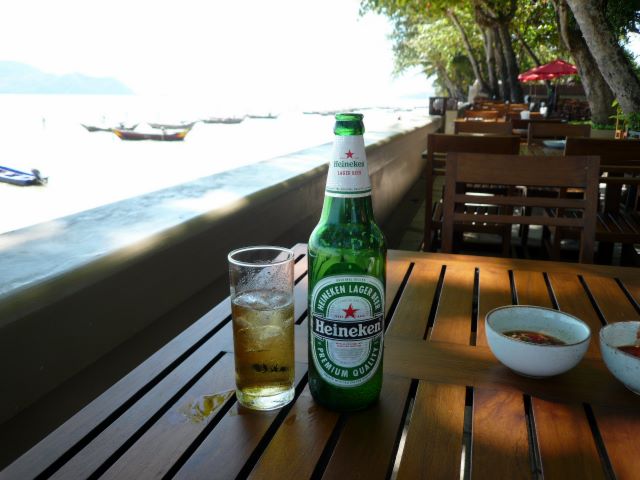 ปลาต้องใช้เวลาย่างประมาณ 30 นาที เพราะใช้ไฟแรงไม่ได้ ไหม้ก่อนสุก ก็ต้องดื่มและชมวิวทะเลรอไปก่อน