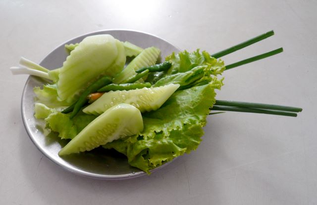 ขอผักสด มาแนมโรตีจิ้มแกง (ปกติผักจะเสริฟกับข้าวหมกไก่)