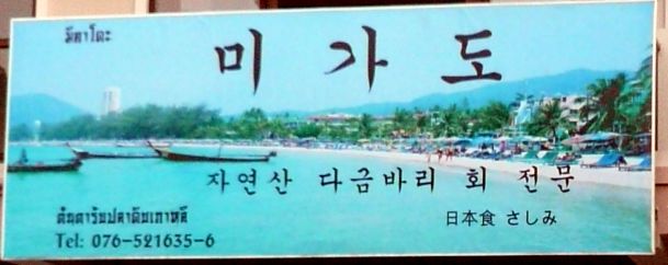 ไปภูเก็ตพรรคพวกที่ทำธุรกิจกับชาวเกาหลีชวนลองไปชิมปลาดิบแบบเกาหลีที่ร้านมิคาโดะดู บอกว่า รสชาติอร่อยดี เพราะใช้ปลาเก๋าสด(ปลาเป็น)จากทะเล ไม่ใช่ปลาเลี้ยง