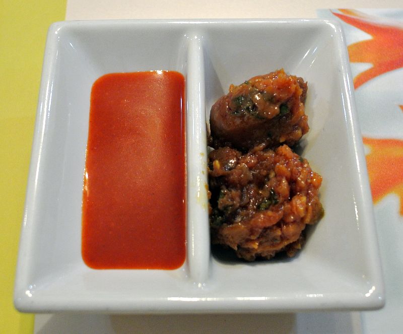 ทานกับซอส 2 แบบ ซอสพริกเกาหลี และ เต้าเจี้ยวผสมโคชูจัง