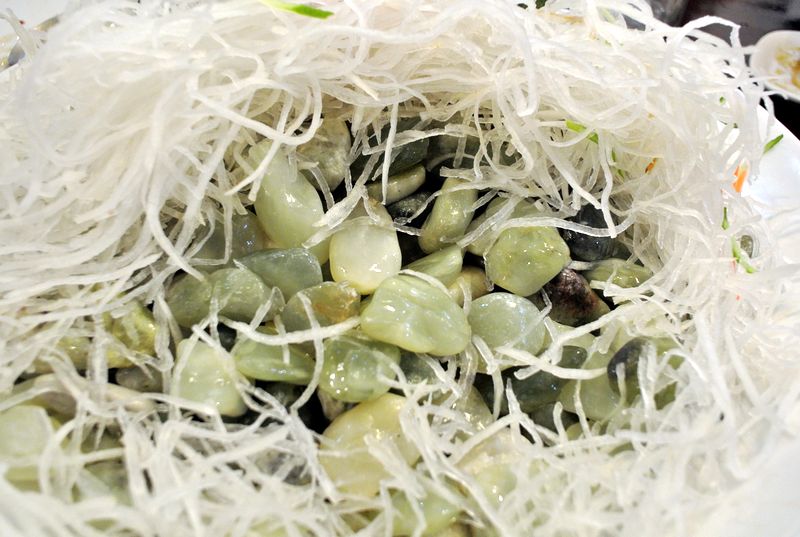 พอทานปลาหมด ถึงได้รู้ว่าด้านในจานเป็นหินที่แช่เย็นจัด เพื่อทำให้เนื้อปลาดิบเย็น หินนี้นำมาจากเกาหลี