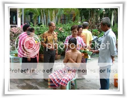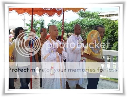 ตอนนนี้ก็คงถึงคราวของผม ตอนแรก ก็ไม่ได้ตื่นเต้นซักเท่าไหร่ แต่พอถึงเช้าวันที่จะบวชจริงๆ ก็รู้สึกว่าใจเต้นแรงมากๆ ยิ่งตอน แม่ ป้าๆ น้าๆ มาปลงผม ผมก็สั่นไปทั้งตัว คงเพราะว่าน้ำที่เอามาสาดหัวมันเย็น