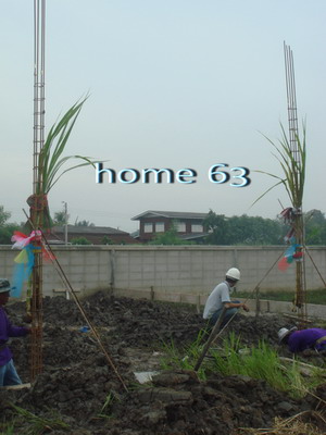 ต้นเดือนสิงหาคม 2551หลังจากที่จองไปเรียบร้อย เซลล์นัดอีก7วันทำสัญญาพร้อมเงินงวดแรก และจ่ายอีก 7 งวดHome 63 เป็นบ้านสั่งสร้างที่เริ่มเติบโตไปพร้อมกับความภาคภูมิใจ และเริ่ม มีความสุข ของคนในครอบครัวระหว่งเดือนสิงหาคม ก็ต้องนั่งคุยกันเรื่องแบบบ้านการจัดวาง การเพิ่มเติมต่างๆ ต้องเข้าไปที่โครงการทุกวันเสาร์ วุ่นวายดีเหมือนกัน (แต่มันผ่านไป ก็เลยไม่อยากจำ) ปลายเดือนก็สรุปแบบตามที่ต้องการ ด้วยความว่าที่บ้านเร่งอยากให้บ้านเสร็จโดยไว้ ก็เลยมี "ฤกษ์ลงเสาเอก"แม่ได้ฤกษ์มาซะรวดเร็วทันใจ แต่ทางโครงการแจ้งว่าต้องแจ้งล่วงหน้าประมาณ 7 วัน เราก็แป่วววว แต่พระเจ้าเข้าข้าง เจ้าหน้าที่โทรมา บอกว่า OK ลงเสาเอกได้ วิ่งวุ่นเตรียมอุปกรณ์สำหรับลงเสาเอก (ศึกษาจากในชายคา) ทุกอย่างพร้อมและแล้ว ก็มาถึง8 กันยายน 2551ลงเสาเอก ป๋าพร้อม นีน่าพร้อม เรา+คนรักพร้อม พี่หนึ่งไม่ว่าง แม่ไม่ร่วมเพราะปีชง ที่เหลือลุยยยยยยก่อนหน้าวันลงเสาฝนตกกระหน่ำ แต่เช้าวันที่ 8 กันยายน ฟ้าใส อากาศดี อิอิอิเรียบร้อยแล้ววววจะมีบ้านแย้ว ดีใจจัง