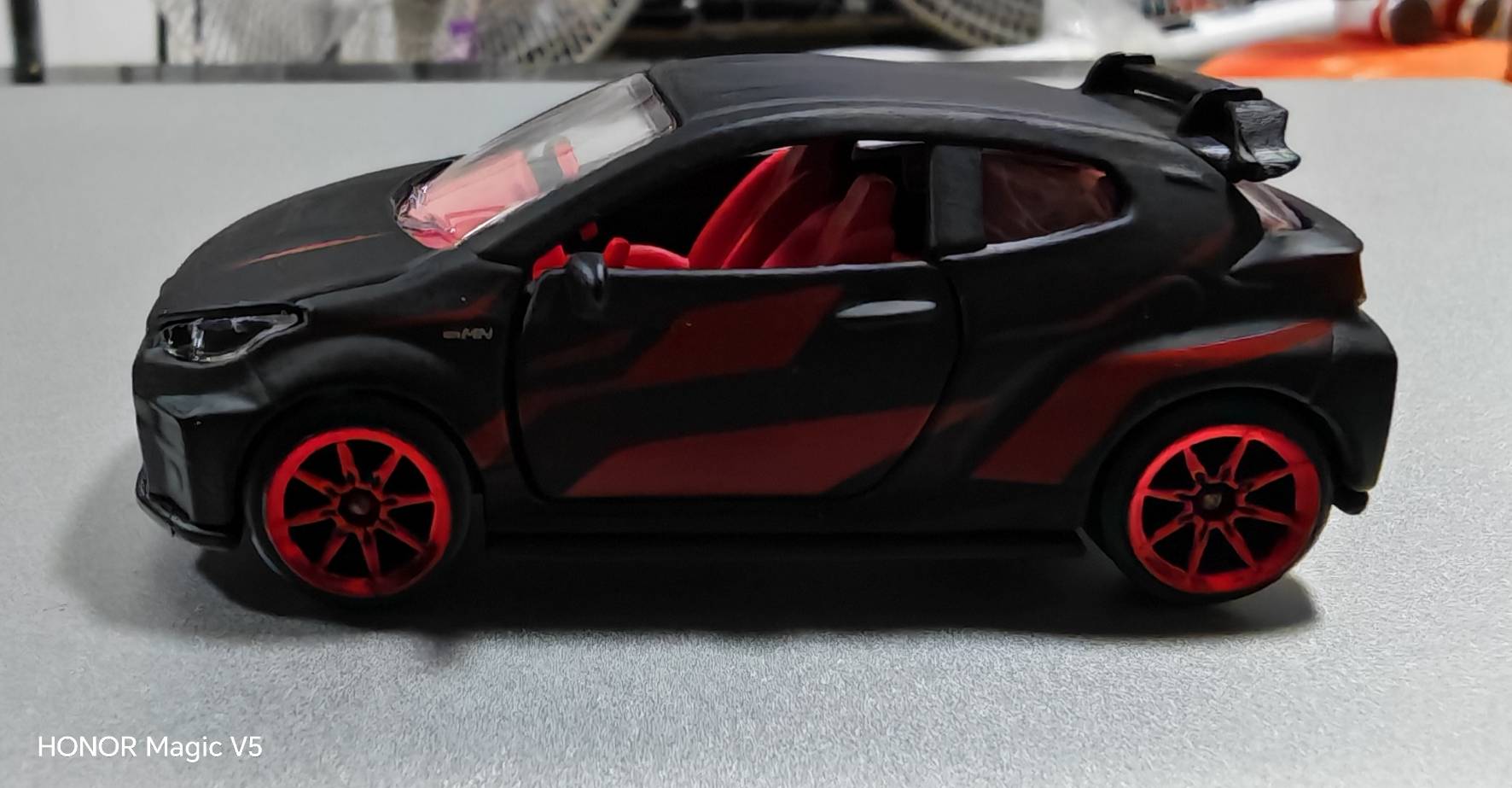 ตัวนี้ทำมาสีดำแบบดำด้าน มี 2 ประตู มีลายเส้นสีแดง ข้างในรถก็แดง ล้อแมกซ์ก็แด๊งแดง แต่ก็สวยนะ เสียดายล้อเป็นล้อพลาสติค ถ้าล้อยางจะแจ่มกว่านี้