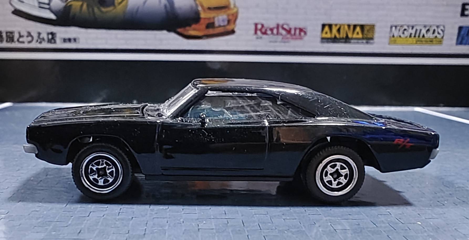 มองด้วยตาเปล่า คันนี้สวยเลย เพราะทำสีแบบดำเงา แต่ต้องระวังในการเก็บรักษาเพราะไม่ระวังเป็นรอยได้ง่าย คันนี้เปิดได้จากล้อ คาดว่าน่าจะมาจากการโดนเขย่า หายากอยู่นะไม่ค่อยเห็นใครเอามาขายด้วย เพราะรถพี่ดอม สาวกคงเก็บเข้ากรุกันหมด แค่ไม่มี gasser แบบรถจริงพี่ดอมแค่นั้นเอง หาเจอก็เก็บเถอะ