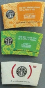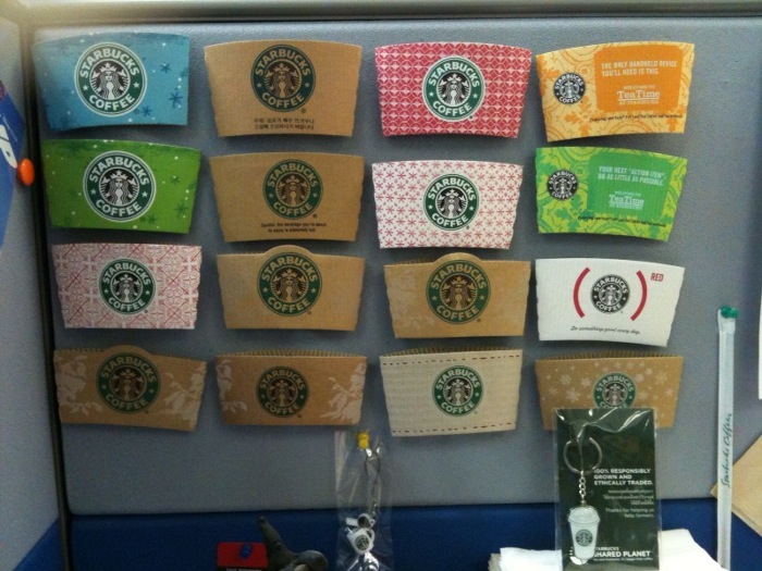 ของนี้ก็คือ Starbucks Hot Cup Sleeve ที่จับแก้วกาแฟร้อนของ Starbucks นั่นเอง โดยตัวผมเองสะสมมาได้ 3 ปีกว่าแล้วครับ พยายามหา พยายามเก็บอย่างมากกว่าจะได้มาอย่างน้อยนิดอย่างในภาพนี้ ฮ่าๆ