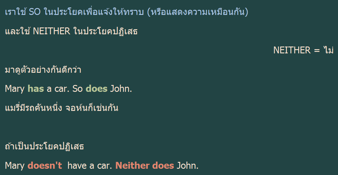 ตอนที่ 2 - 8 English Grammar - SO & NEITHER หลักการใช้ภาษาอังกฤษ - SO & NEITHER