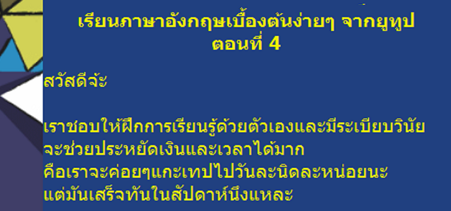 เรียนภาษาอังกฤษเบื้องต้นง่ายๆ จากยูทูป ตอนที่ 4