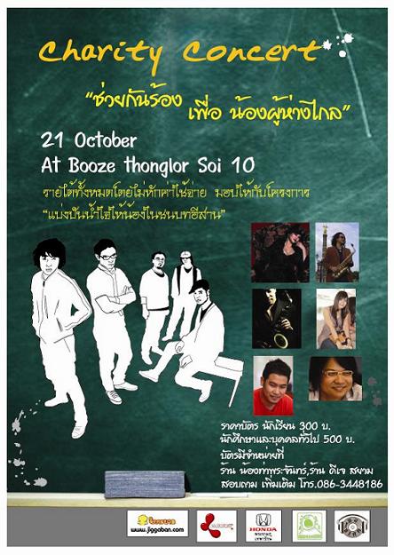 ศิลปินที่ร่วมงานการกุศลครั้งนี้ก็มี 1. Etc. 2. โก้ Mr. Saxman 3. เจนนิเฟอร์ คิ้ม 4. ฟอร์ด สบชัย ไกรยูรเสน 5. ลิปตา 6. เดียร์ Acappella 7 7. ลูกหว้า ดูบาดู และศิลปินท่านอื่น ๆ อีกมากมาย