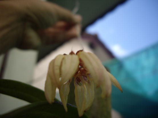นำไปป้ายที่เกสรตัวเมีย ตรงที่เป็นแนวร่อง เราอาจจะทำการผสม หลายๆครั้งก็ได้ เพื่อให้มั่นใจ