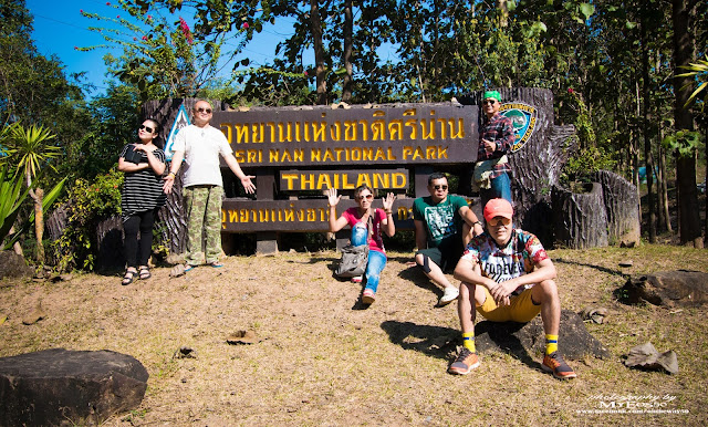 แดดออกมากแล้ว พากันเก็บเต้นท์ ลงจากอุทยานศรีน่าน เก็บป้ายอุทยานกันเป็นที่ระลึกก่อน